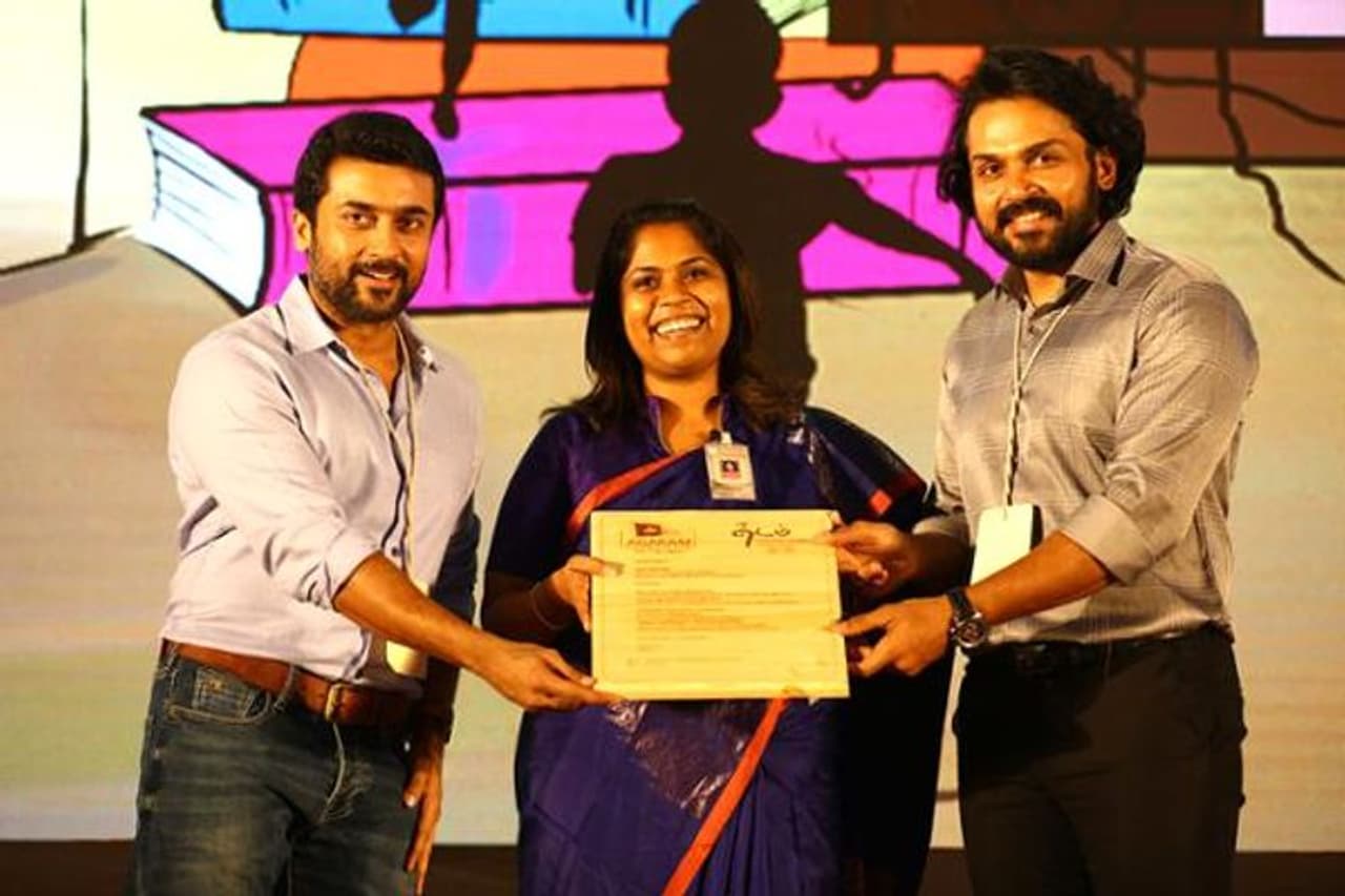 பிரபல பழம்பெரும் நடிகர் சிவக்குமாரின் குடும்பத்தில் அனைவரும் திரை பிரபலங்களாக ஜொலித்து வருகின்றனர். அதோடு சூர்யா, கார்த்தி இருவருமே தனித்தனியாக தயாரிப்பு நிறுவனங்களையும் நடத்தி வருகின்ன்றன. அதோடு நடிகர் சூர்யா தனது குடும்பத்தின் உதவியுடன் அகரம் பவுண்டேசன் என்னும் பெயரில் கல்வி அறக்கட்டளை நடத்தி வருகிறார்..இந்த அறக்கட்டளை மூலம் ஏழை கிராமப்புற மாணவர்களை ஒவ்வொரு ஆண்டும் கண்டறிந்து அவர்களுக்கு தேவையான கல்வி உதவிகளை செய்து வருகிறார்.