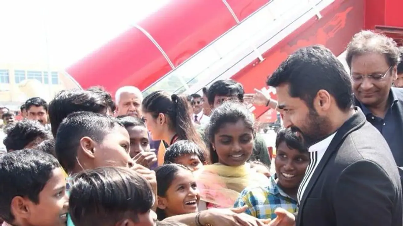 சூப்பர் ஸ்டாரின் பிரம்மாண்ட வெற்றி படங்களான 2.ஓ, கபாலி படங்களின் போஸ்டர்கள் மட்டுமே வானில் பறந்தன. இந்நிலையில் ஆடியோ லாஞ்சையே 100 குழந்தைகளுடன் நடுவானில் வைத்து அமர்களப்படுத்திவிட்டார் சூர்யா.
