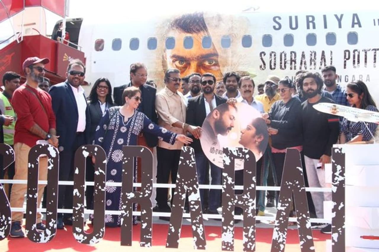 அதன்படி இன்று சென்னை விமான நிலையத்தில் நடைபெற்ற ஆடியோ லாஞ்சில் பங்கேற்பதற்காக கோர்ட் சூட்டில் சும்மா கெத்தாக வந்திருந்தார் சூர்யா. இந்நிகழ்ச்சியில் இயக்குநர் சுதா கொங்கரா, ஜி.வி. பிரகாஷ், மோகன் பாபு, பாடலாசிரியர் விவேக்,ஸ்பைஸ் ஜெட் விமானத்தின் நிர்வாக இயக்குனர் அஜய் சிங் உள்ளிட்டோர் இந்த இசை வெளியீட்டு விழாவில் பங்கேற்றுள்ளனர்.