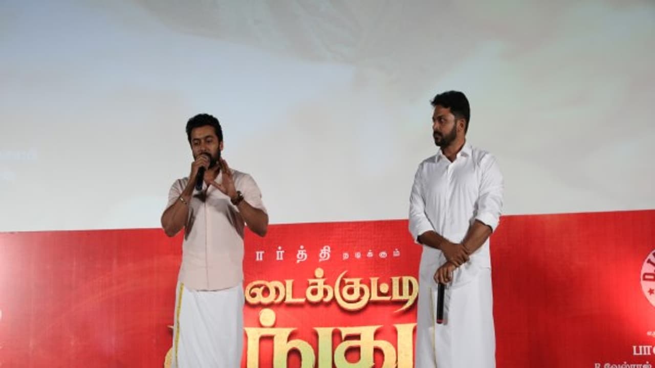 தொடர்ந்து பேசிய சூர்யா எப்போதும் ஒரு விஷயத்துக்காக நாம் உண்மையாக உழைத்தால் அது கண்டிப்பாக நமக்கு பலனை தரும். அப்படி உண்மையாக உருவான இயக்குநர் பாண்டிராஜின் கதையால் இப்படம் இவ்வளவு நடிகர்கள் பட்டாளத்தோடு சிறப்பாக அமைந்துள்ளது என்று கூறினார். மேலும் சத்யராஜ் மாமா நாங்கள் குழந்தையாக இருக்கும் போது அவர் வாங்கிய முதல் சம்பளத்தில் எனக்கும் கார்த்திக்கும் சாப்பிட இனிப்பு வகைகளை வாங்கித்தந்தார். இப்போது சத்யராஜ் மாமா கார்த்தியுடன் நடிக்கும் படத்தை நாங்கள் தயாரித்துளோம். இது எங்களுக்கு வாழ்கையில் கிடைத்த மிகப்பெரிய பரிசு என்று கூறினார்.