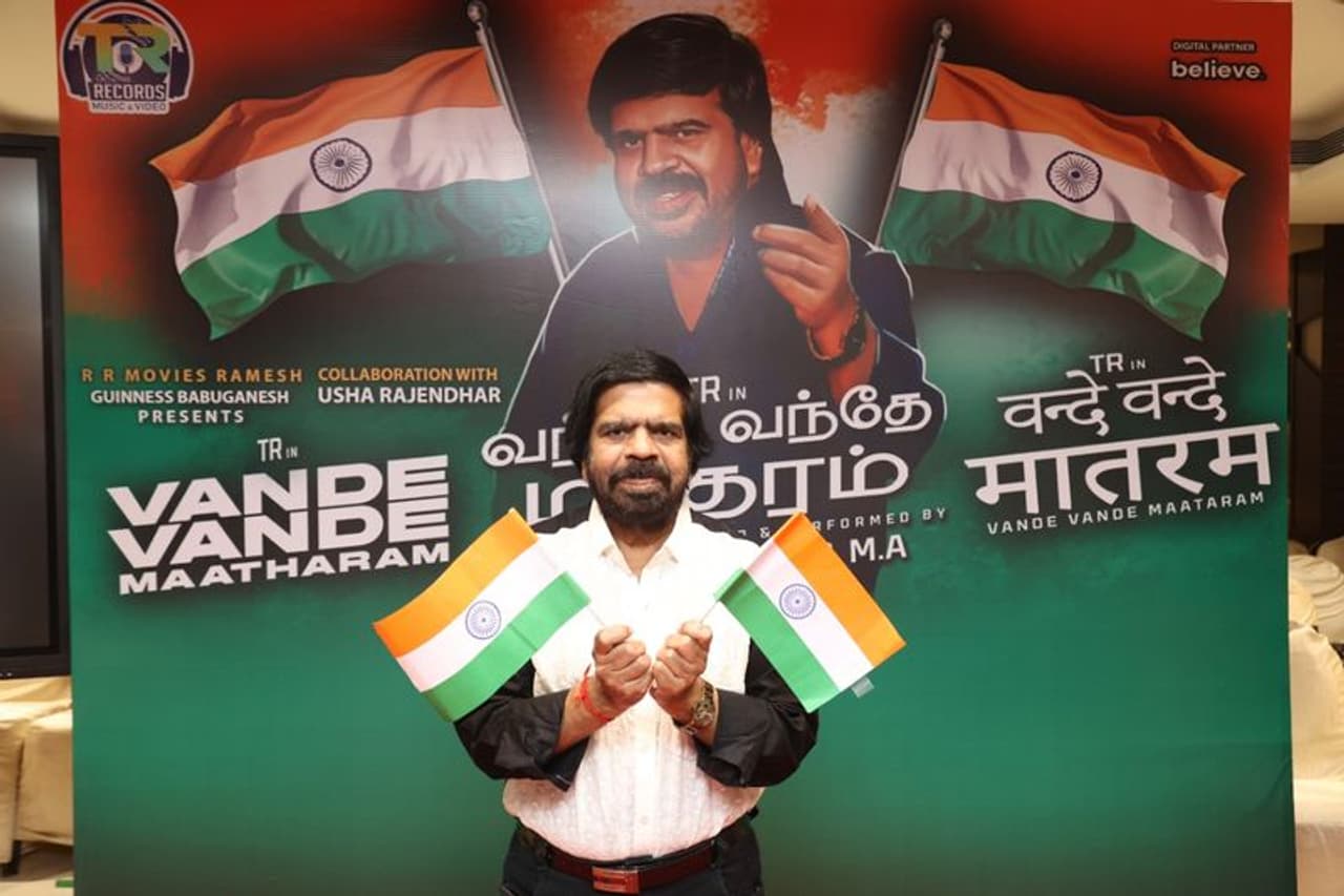 நான் படத்திற்காக பாட்டெழுதியுள்ளேன், கழகத்திற்காக, கட்சிக்காக, ஏன் காதலுக்காக, பாசத்துக்காக கூட பாட்டெழுதியுள்ளேன். இப்பொழுது முதன் முதலாக இந்த பாரத தேசத்திற்காக ஒரு பாட்டு 'வந்தே வந்தேமாதரம், வாழிய நமது பாரதம்' என்கிற பாடலை அகில இந்திய கான்செப்டில் தமிழ் மற்றும் இந்தியில் உருவாக்கியுள்ளேன்," என்று கூறியுள்ளார். மேலும், தனது புதிய முயற்சிக்கு நாடெங்கிலும் உள்ள மக்கள் தங்களது பேராதரவை வழங்குவார்கள் என்று டி ஆர் நம்பிக்கை தெரிவித்தார்.