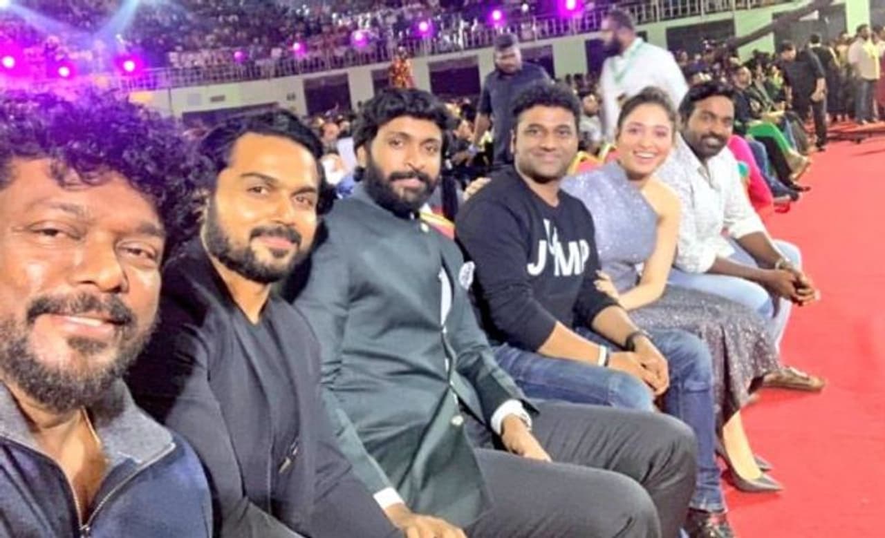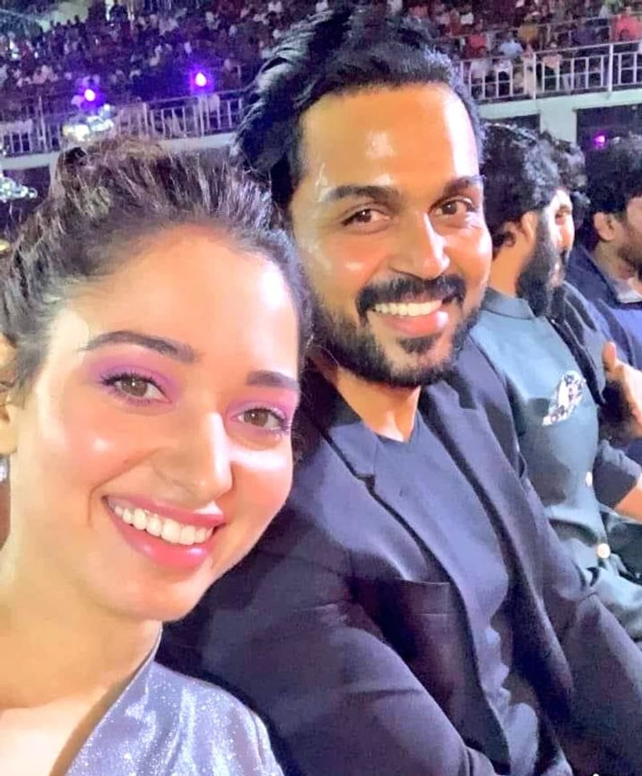 கிரே நிற ஒன்சைடு ஸ்லீவ் லெஸ் உடையில் விழாவிற்கு வந்திருந்த தமன்னா, அனைவரது கவனத்தையும் வெகுவாக ஈர்த்தார். அதோடு இல்லாமல் தன்னோடு முந்தைய படங்களில் விஜய் சேதுபதி, கார்த்தி ஆகியோருடன் செல்ஃபி எடுத்துள்ளார். அதிலும் உலக நாயகன் கமல் ஹாசனுடன் தமன்னா எடுத்துக் கொண்ட செல்ஃபி லைக்குகளை குவித்து வருகிறது.