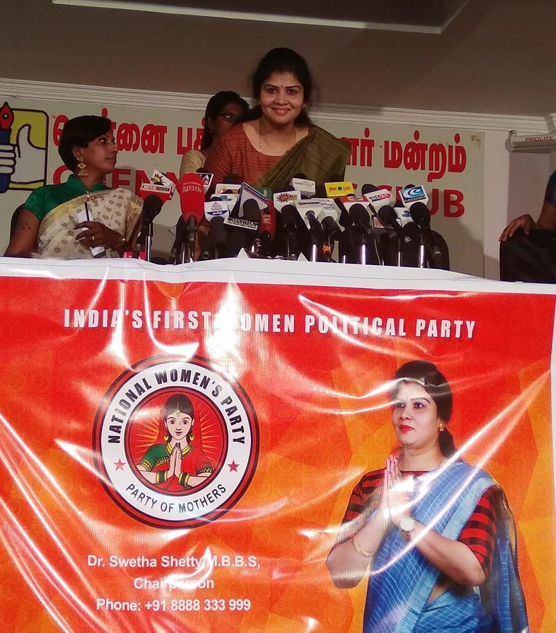 'தேசிய பெண்கள் கட்சி' முழுக்க முழுக்க பெண்களுக்காக துவங்கப்பட்டுள்ளது, பெண்களின் உரிமை, பெண்கள் மீது நடைபெறும் வன்முறை ஆகியவற்றிக்கு குரல் கொடுக்கவும் போராடவும் உள்ளதாக தெரிவிக்கப்பட்டுள்ளது. இதுவரை ஆட்டம், பாட்டம் என தன்னுடைய மகளுடன் நிகழ்ச்சிகளில் கலந்து கொண்ட இவர் இனி முழு நேர அரசியல் வேலையில் ஈடுபடுவார் என எதிர்பார்க்கப்படுகிறது.