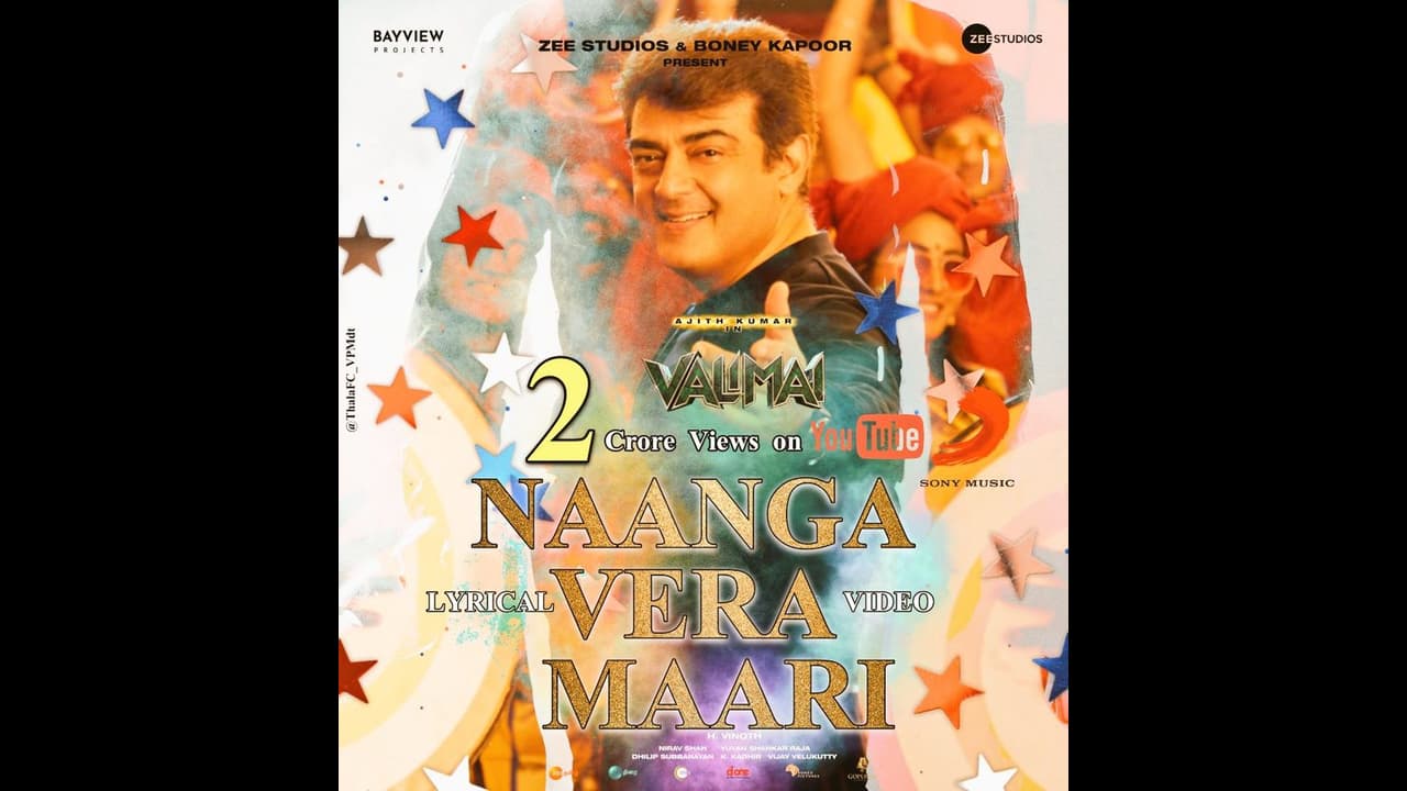 இதுகுறித்த ரசிகர்களின் கேள்விக்கு கூட பதிலளித்த யுவன் ஷங்கர் ராஜா , “படம் தொடங்கும் காலக்கட்டத்திலேயே அஜித் சாருக்கு மாஸான இன்ட்ரோ பாடல் வேண்டும் என்று வினோத் கூறியிருந்தார். ரசிகர்களுக்குக் கொண்டாட்டமாக இருக்கும் விதத்தில் பாடல் வர வேண்டுமென்று விரும்பினேன். அப்படியே இந்தப் பாடலும் உருவானது” என தெரிவித்திருந்தார். பாடல் வெளியான சில விநாடிகளில் இருந்தே பல்வேறு சாதனைகளை படைத்து வந்த நிலையில், தற்போது நாங்க வேற மாதிரி பாடல் யூ-டியூப்பில் 20 மில்லியன் பார்வையாளர்களைக் கடந்து சாதனை படைத்துள்ளது. இதனையடுத்து #VeraMaari, #NaangaVeraMaari, #Valimai ஆகிய ஹேஷ்டேக்குகளுடன் தல ரசிகர்கள் ட்விட்டரை தெறிக்கவிட்டுள்ளனர்.