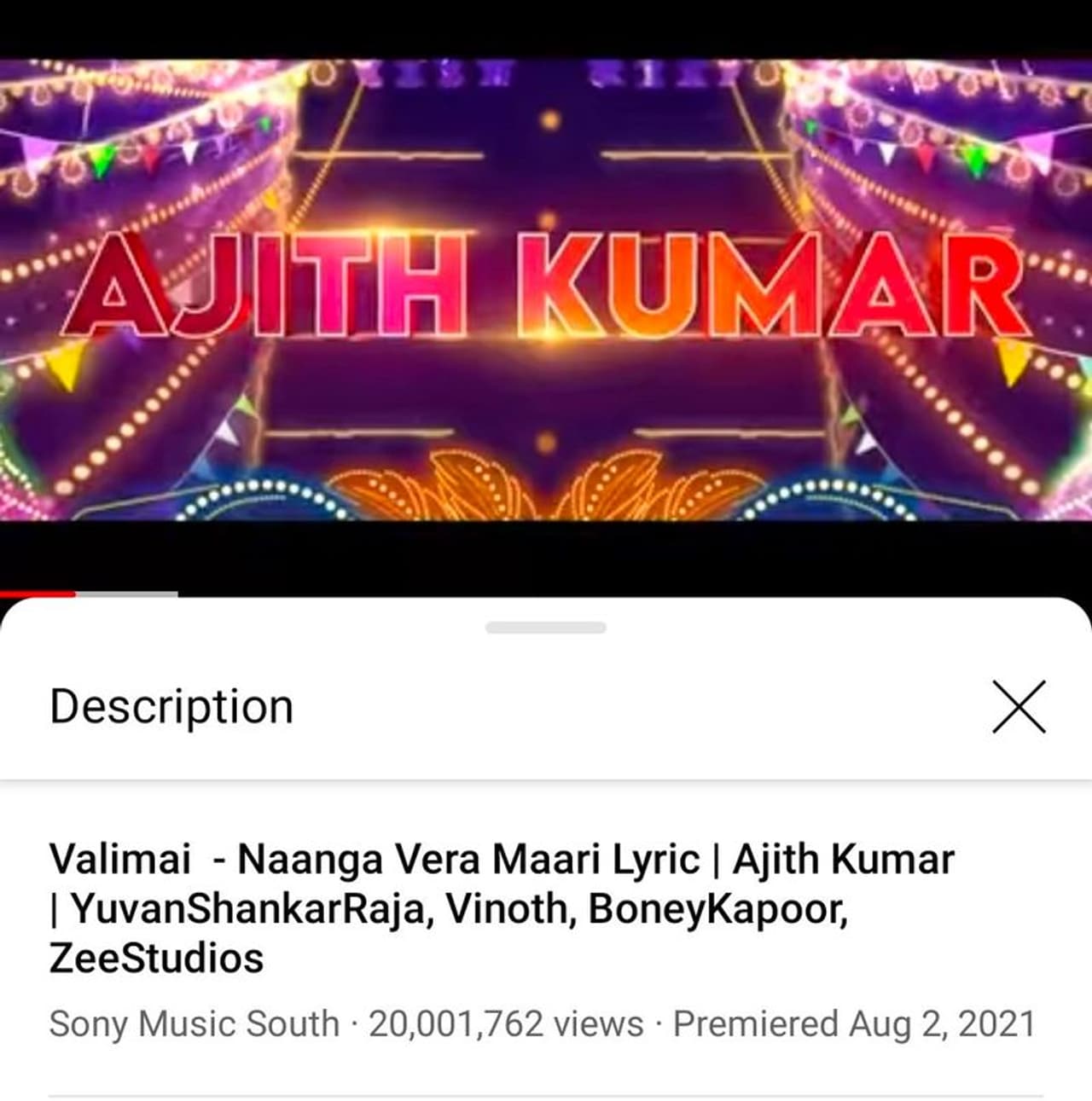 தற்போது நாங்க வேற மாதிரி பாடல் யூ-டியூப்பில் 20 மில்லியன் பார்வையாளர்களைக் கடந்து சாதனை படைத்துள்ளது.