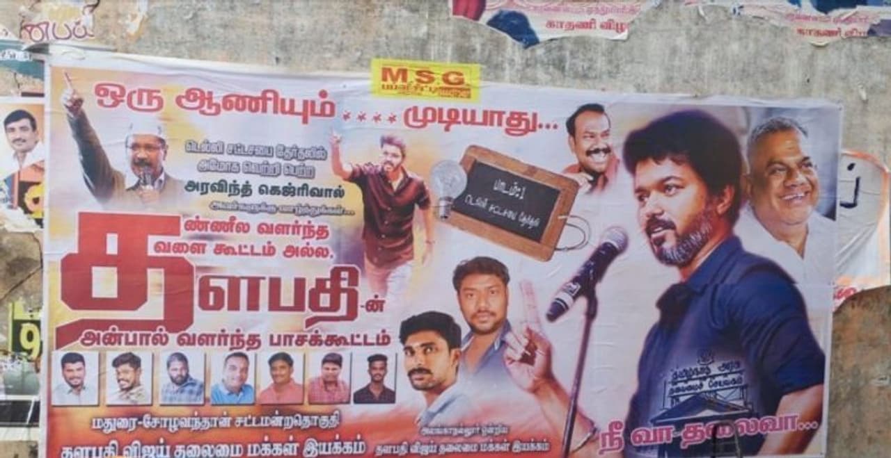 மேலும் அந்த போஸ்டரில் டெல்லி தேர்தலில் வெற்றி பெற்ற அரவிந்த் கெஜ்ரிவாலுக்கும் வாழ்த்து தெரிவித்துள்ளனர். விஜய்யை அரசியலோடு தொடர்புபடுத்தி விதவிதமாய் போஸ்டர் ஒட்டுவது நாளுக்கு, நாள் அதிகரித்து வருகிறது.