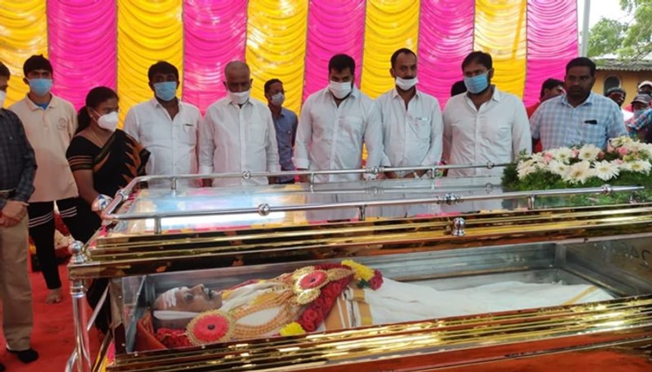 இதை தொடர்ந்து எஸ்.பி.பி உடலுக்கு இறுதி சடங்குகள் நடைபெற்ற பின்னர். அவருடைய உடல் சரியாக 12:30 மணி அளவில், 72 குண்டுகள் முழங்க அரசு மரியாதையுடன் பண்ணை வீட்டில் நல்லடக்கம் செய்யப்பட்டது.
