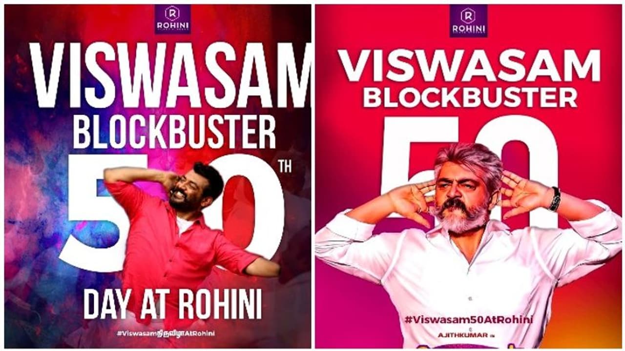 நேற்றும் அதற்கு முன் தினமும் தமிழகம் முழுக்கவே ரஜினி மற்றும் அஜீத் ரசிகர்கள் ‘பேட்ட’ மற்றும் ‘விஸ்வாசம்’ படங்களின் 50 வது நாள் வெற்றியை போட்டிபோட்டுக்கொண்டாடினர். இதே காரணத்துக்காக துவக்கத்திலிருந்தே அஜீத் ரசிகர்களை அளவுக்கு அதிகமாக உற்சாகப்படுத்தி வரும் சென்னை ரோகினி காம்ப்ளக்ஸ் உரிமையாளர்கள் ‘விஸ்வாசம்’ படத்துக்கென்றே பிரத்யேகக் காட்சிகளை ஏற்பாடு செய்திருந்தனர்.
