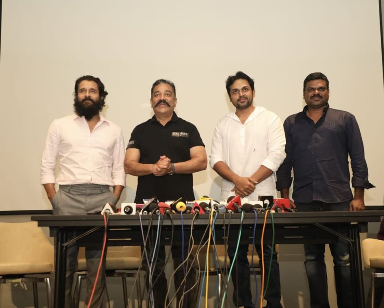 சீயான் விக்ரம் பேசுகையில், '' எங்களுடைய கனவு நனவாகிவிட்ட நிஜமான சந்தோஷம் இது. மிகப்பெரிய வரவேற்பு கிடைத்திருக்கிறது. இதற்கு மிகவும் நன்றி. மூன்று தலைமுறையைச் சேர்ந்த ரசிகர்கள் இதனை பார்த்துக் கொண்டாடுகிறார்கள். இந்த படைப்பில் நாங்கள் இருக்கிறோம் என்பது எங்களுக்கு மகிழ்ச்சி. படத்தின் தொடக்கத்தில் கமல்ஹாசன் அவர்களின் குரலில் தான் தொடங்கும். இதற்காக அவருக்கு இந்த தருணத்தில் நன்றி தெரிவித்துக் கொள்கிறேன். இது எல்லாம் கடந்து இது அவருடைய படமாக நினைத்து, இங்கு வருகை தந்து, பார்த்து ரசித்ததுடன் மட்டுமல்லாமல், அந்தப் படத்தை பற்றி தன்னுடைய எண்ணத்தை மக்களிடத்தில் பகிர்ந்து கொண்டிருக்கிறார். அவருடைய இந்த நேர்மையான அணுகுமுறையை மனதாரப் பாராட்டுகிறோம்.” என்றார்.