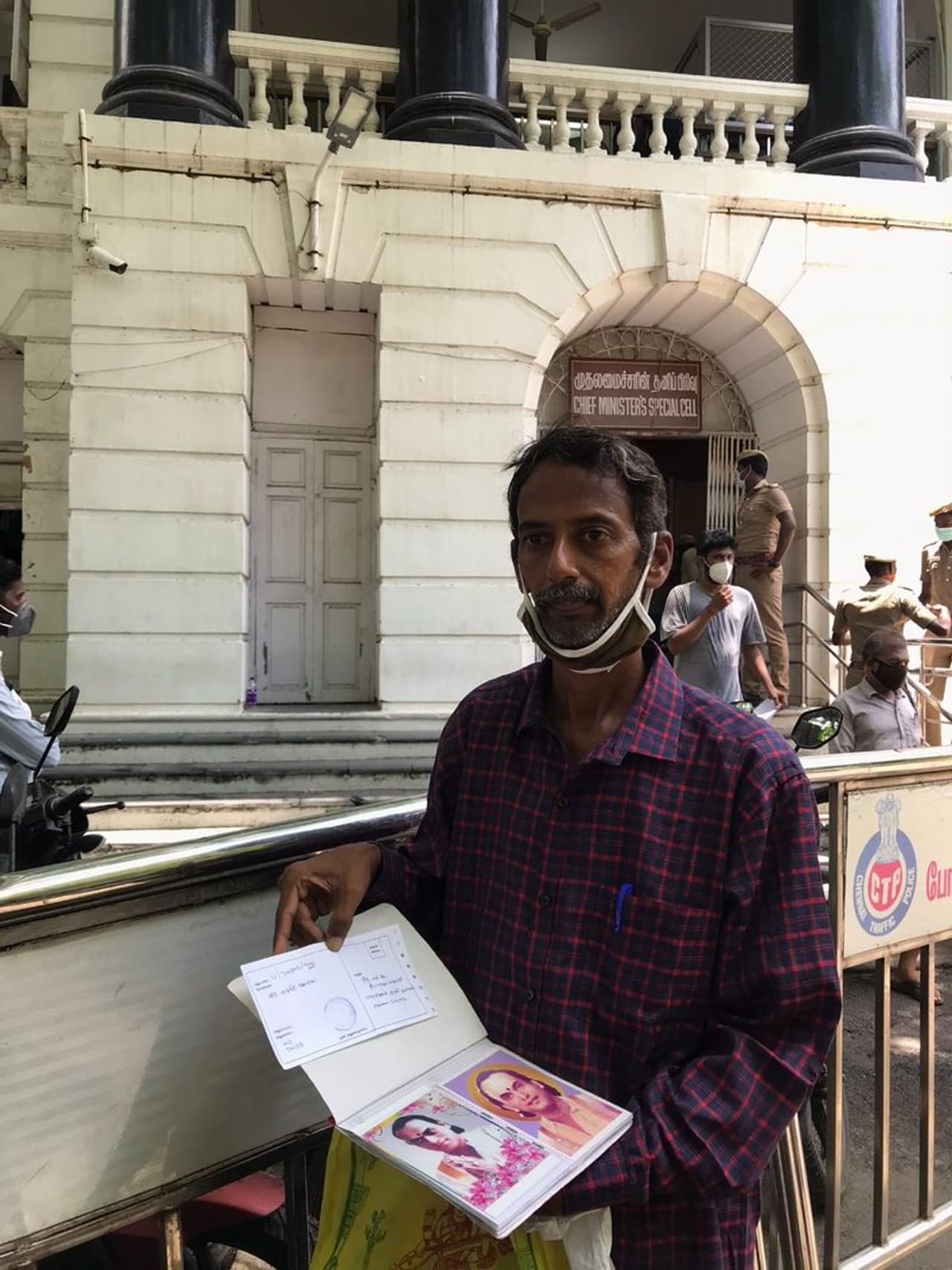 திரையுலகின் முதல் சூப்பர் ஸ்டாராக அறியப்பட்டவர் எம்.கே.தியாகராஜ பாகவர், செல்வ செழிப்புடன் வாழ்ந்த இவரது வாரிசுகள் தபோது ஏழ்மையில் பிடியில் இருக்கின்றனர். இந்நிலையில் தியாகராஜ பாகவதரின் மகள் வயிற்றுப் பேரன் சாய்ராம் என்பவர் முதல்வருக்கு மனு ஒன்றை கொடுத்தார்.