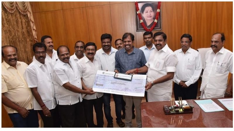 ஆ.கே.செல்வமணி முக்கிய நிர்வாகிகளுடன் தலைமைச் செயலகத்தில் முதல்வரை சந்தித்த நிலையில், அறிவிக்கப்பட்ட நிதியில் முதல் கட்டமாக 1 கோடி ரூபாய்க்கான காசோலையை ஆர்.கே. செல்வமணியிடம் முதல்வர் எடப்பாடி பழனிச்சாமி வழங்கினார்.