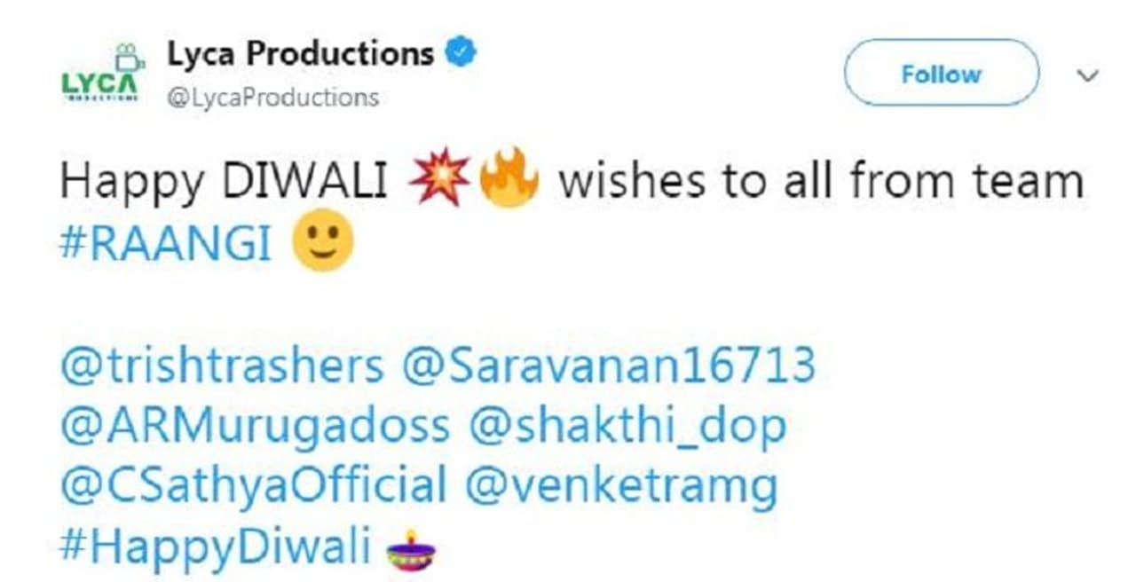 அதேநேரம், தீபாவளி ஸ்பெஷலாக ராங்கி படத்தின் 3-வது லுக் போஸ்டரை படத்தை தயாரிக்கும் லைகா நிறுவனம் வெளியிட்டு ரசிகர்களுக்கு வாழ்த்து தெரிவித்துள்ளது. ஸ்டைலிசான லுக்கில் திரிஷா இருக்கும் இந்த போஸ்டர், சோசியல் மீடியாவில் ரசிகர்களின் லைக்குகளை அள்ளிவருகிறது.