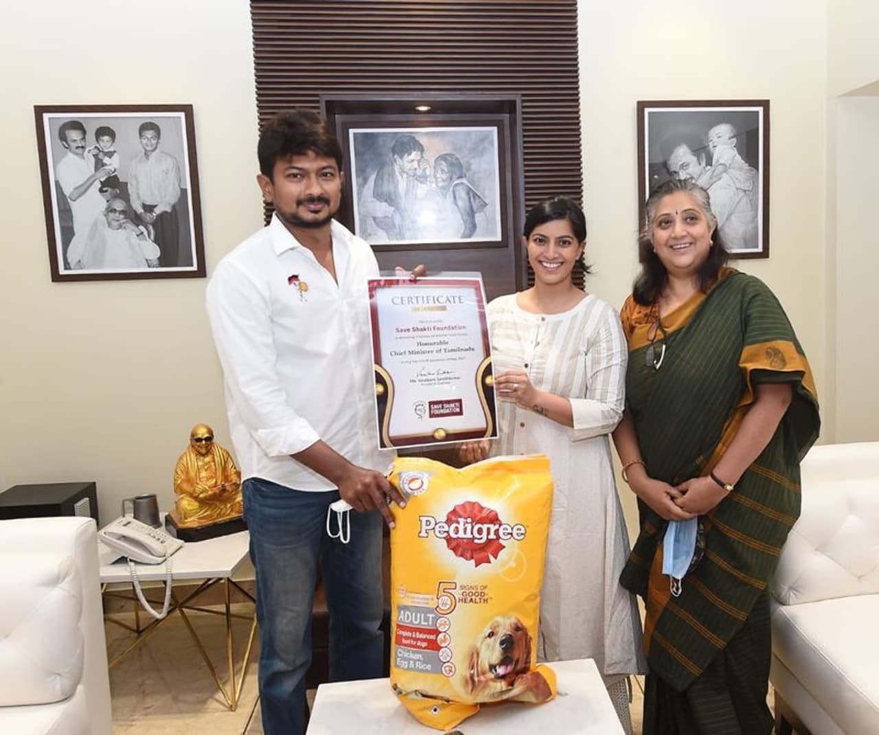 மேலும் தற்போது கொரோனா நேரத்தில் உணவில்லாமல் பசியால் வாடும் விலங்குகளுக்கு உணவளிக்க வேண்டும் என, ரசிகர்களுக்கு கோரிக்கை வைத்து வருவதுடன், சென்னையில் உள்ள பல்வேறு இடங்களில் உள்ள தெருநாய்களுக்கு உணவு வைத்து வருவதை வழக்கமாக வைத்துள்ளார். நேற்றைய தினம் கூட Save Shakti Foundation, Sankalp Beautiful, World-Pedigree India சார்பில் ஊரடங்கில் ஆதரவற்ற விலங்குகளுக்கு உதவுவதற்காக 2 டன் உணவு உணவுகளை சட்டமன்ற உறுப்பினர் உதயநிதி ஸ்டாலினை சந்தித்தது வழங்கியுள்ளார். இவரது இந்த செயலுக்கு பல்வேறு தரப்பில் இருந்தும் வாழ்த்துக்கள் குவிந்தது.