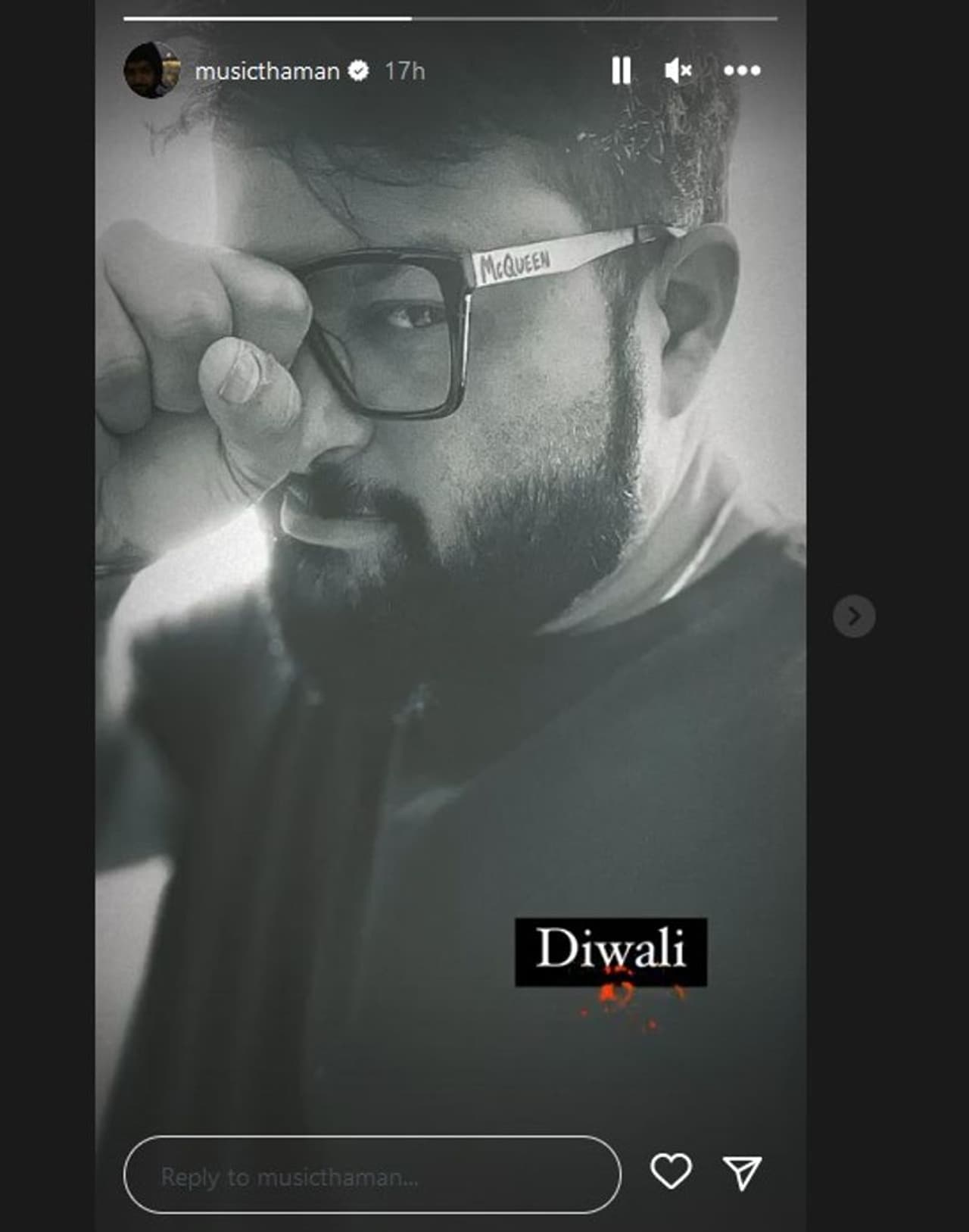 இந்த ஆண்டு தீபாவளிக்கு தளபதியின் திரைப்படம் திரையரங்கில் வெளியாகாதது அவரது ரசிகர்களுக்கு மிகப்பெரிய ஏமாற்றம் என்றாலும், பொங்கலுக்கு 'வாரிசு' படத்தை வெறித்தனமாக வரவேற்க காத்திருக்கின்றனர். மேலும் தற்போது கசிந்துள்ள தகவலின் படி, வாரிசு படத்தின் ஃபர்ஸ்ட் சிங்கள் பாடல் தீபாவளியை முன்னிட்டு வெளியாக வாய்ப்புள்ளதாக கூறப்படுகிறது. இது விஜயின் ரசிகர்களுக்கு மிகப்பெரிய விருந்தாக இருக்கும் என்பதில் எந்த சந்தேகமும் இல்லை. மேலும் இதுவரை, இது குறித்த அதிகாரப்பூர்வ தகவல் வெளியாகவில்லை என்றாலும்.. 'வாரிசு' படத்தின் இசையமைப்பாளர் போட்டுள்ள போஸ்டை பார்த்து தான் இப்படி ஒரு தகவல் தீயாக பரவி வருகிறது.