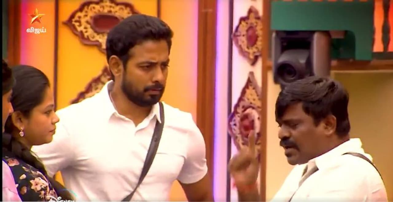 இதை ரசித்து பாலாஜி முருகதாஸ் சிரித்துக் கொண்டிருக்கிறார். அடுத்து வரும் ரம்யா பாண்டியனிடம் ஒருத்தரை நாமினேட் பண்ணணும் என சொல்ல அவரும் வேல்முருகன் பெயரை சொல்கிறார்.