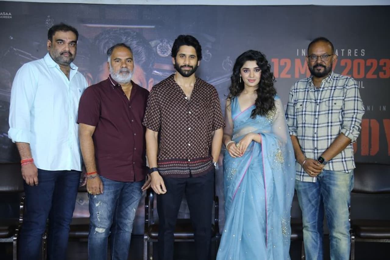 ஸ்ரீனிவாசா சில்வர் ஸ்கிரீன், ஸ்ரீனிவாசா சித்தூரி புரொடக்ஷன்ஸ், பவன்குமார் வழங்கும் ’வெங்கட்பிரபுவின் ஹண்ட்’ என்ற டேக் லைனோடு நடிகர் நாக சைதன்யா, கீர்த்தி ஷெட்டி நடிப்பில் 'கஸ்டடி' டிரெய்லர் வெளியீட்டு விழா மற்றும் பத்திரிக்கையாளர்கள் சந்திப்பு சென்னையில் நடைபெற்றது. இந்த சந்திப்பில் ஹீரோ நாக சைதன்யா, ஹீரோயின் கீர்த்தி ஷெட்டி, தயாரிப்பாளர் சீனிவாசா, நடிகர் பிரேம்ஜி ஆகியோர் கலந்து கொண்டனர்.