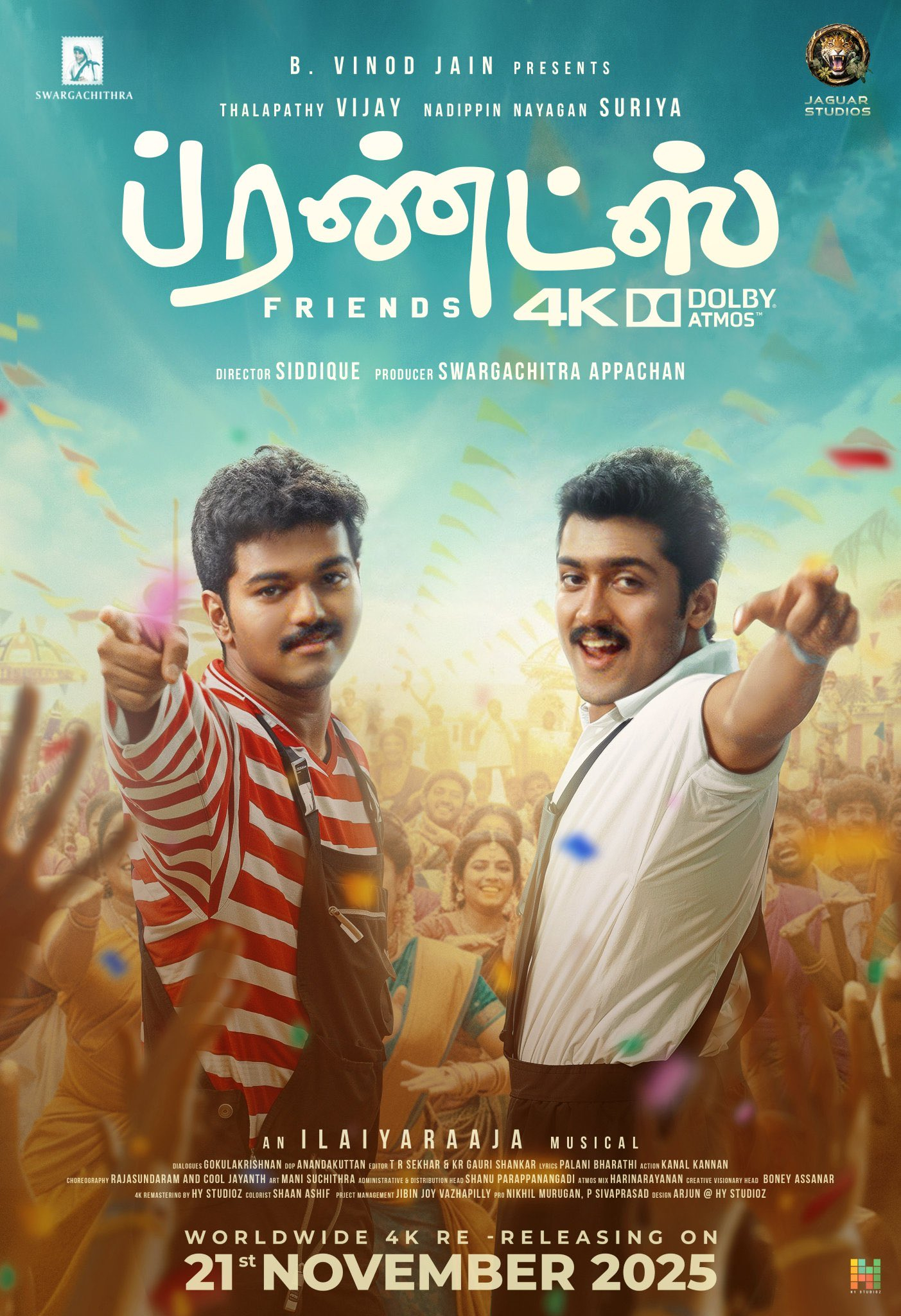 விஜய்-சூர்யா கூட்டணியில் உருவான தமிழ் பிளாக்பஸ்டர் படமான 'ப்ரண்ட்ஸ்' மீண்டும் திரையரங்குகளுக்கு வருகிறது. அப்படம் எப்போது ரீ-ரிலீஸ் ஆகிறது என்பதை இந்த தொகுப்பில் பார்க்கலாம்.