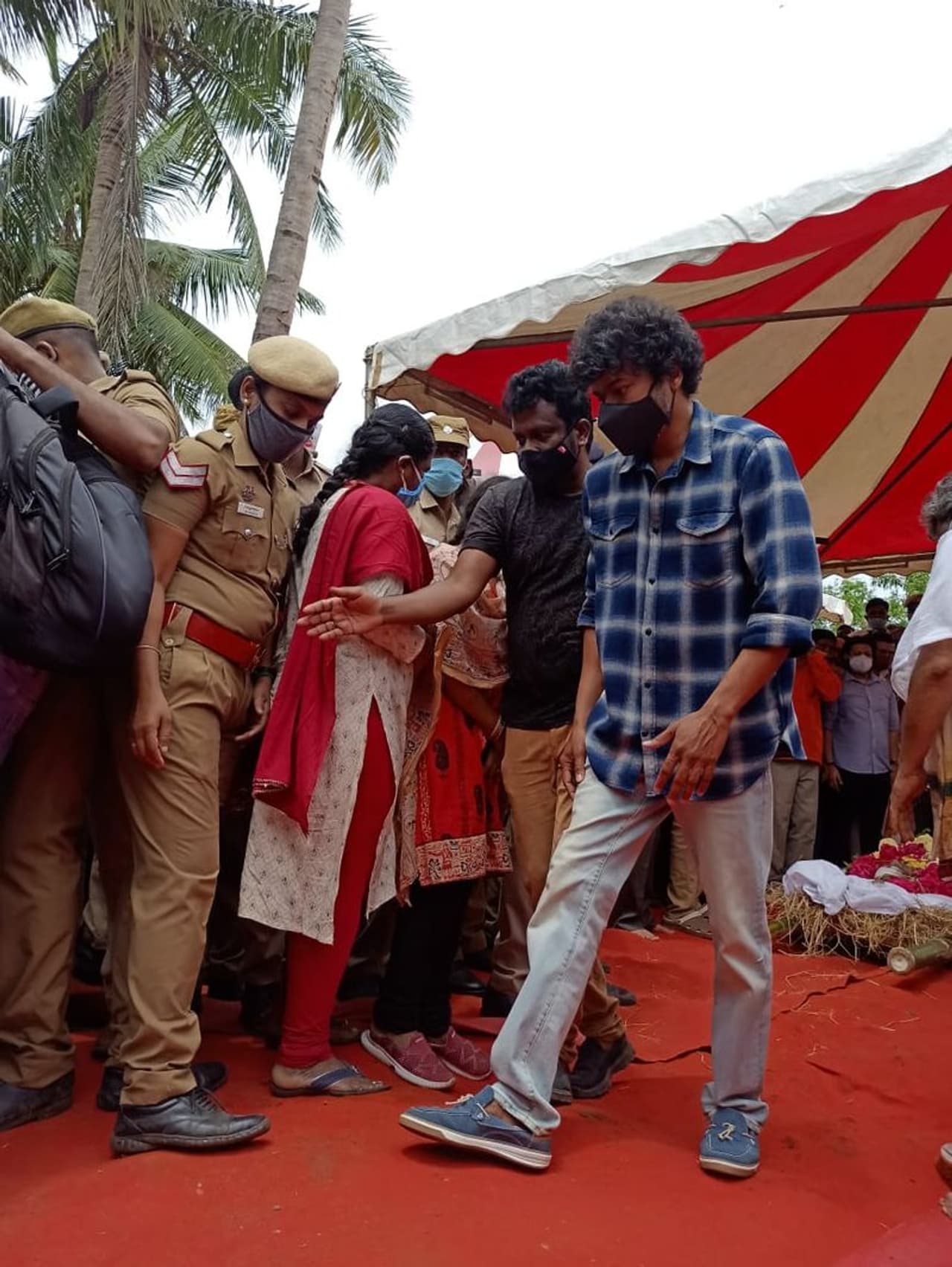 சரியாக 3.30 மணி அளவில் எஸ்.பி.பாலசுப்ரமணியத்தின் உடல் மருத்துவமனையில் இருந்து சென்னை காம்தார் நகரில் உள்ள வீட்டிற்கு எடுத்துச் செல்லப்பட்டது. அங்கு மாலை 6 மணி வரை அவரது உடலுக்கு பொதுமக்கள், திரையுலகினர் உள்ளிட்டோர் அஞ்சலி செலுத்த உள்ளனர். இதையடுத்து தாமரைப்பாக்கத்தில் உள்ள பண்ணை வீட்டில் இன்னும் சற்று நேரத்தில் அவரது உடல் நல்லடக்கம் செய்யப்பட உள்ளது. இந்நிலையில் இறுதி சடங்குகள் முடித்த பின்னர், கடைசி நேரத்தில் தளபதி விஜய் எஸ்.பி.பி உடலுக்கு நேரில் வந்து அஞ்சலி செலுத்தினார். மேலும் எஸ்.பி.பி சரணிடம் துக்கம் விசாரித்து விட்டு அங்கிருந்து கிளம்பினார். நடிகர் விஜயின் பல படங்களுக்கு எஸ்.பி.பி பாடல்கள் பாடியுள்ளது மட்டும் இன்றி, சூப்பர் ஹிட் திரைப்படமான பிரியமானவள் படத்தில் விஜய்யின் தந்தையாக நடித்துள்ளார் என்பது குறிப்பிடத்தக்கது.