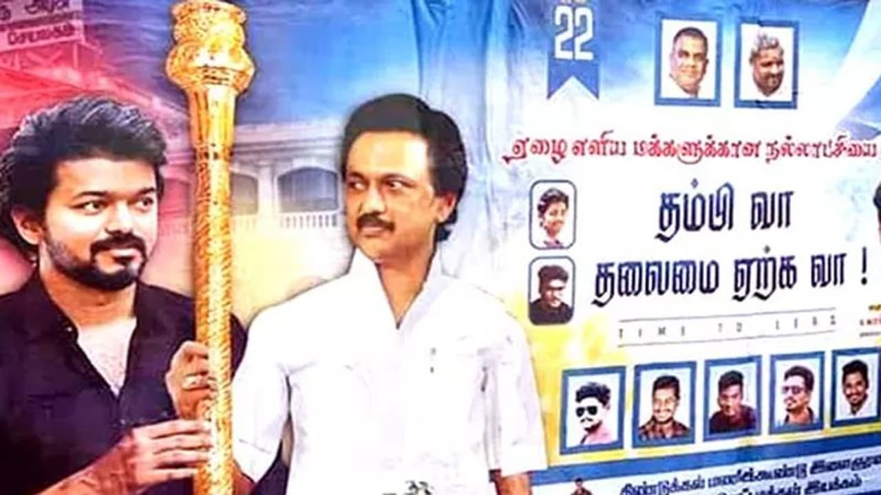 தமிழக முதல்வர் முக ஸ்டாலினுடன் விஜய் இருப்பது போலவும், ஸ்டாலின் செங்கோல் கொடுத்து, ’ஏழை எளியவர்களுக்கான நல்லாட்சியை வழங்கிட தம்பி வா! தலைமை ஏற்க வா! என அழைப்பு விடுப்பது போன்ற வார்த்தைகள் இடம்பெற்றுள்ளது. எப்போதும் சர்ச்சைக்கு பஞ்சம் இல்லாமல் போஸ்டர்களில் வசனங்களை தெறிக்க விடும் ரசிகர்கள் இந்த முறையும்.... சற்றும் குறைவைக்காமல் தங்களுடைய செயலை செய்ய துவங்கி உள்ளனர். இந்த போஸ்டர் தற்போது பரபரப்பாக பார்க்கப்பட்டு வருகிறது.