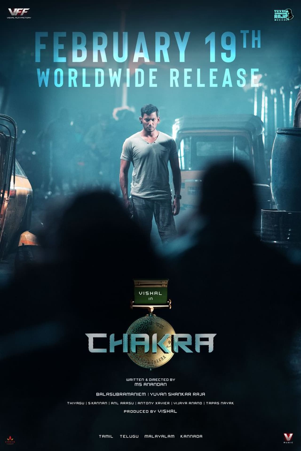 இயக்குநர் எழிலிடம் உதவியாளராக பணியாற்றிய ஆனந்தன் இயக்கத்தில் உருவாகியுள்ள சக்ரா படத்தில் விஷால் நடித்துள்ளார். இதில் அவருக்கு ஜோடியாக ஷ்ரத்தா ஸ்ரீநாத் நடித்துள்ளார். மேலும் ரோபோ சங்கர், ரெஜினா உள்ளிட்டோரும் முக்கிய கதாபாத்திரத்தில் நடித்துள்ளனர். விஷால் ஃபிலிம் ஃபேக்டரி இத்திரைப்படத்தை தயாரித்துள்ள இந்த படத்திற்கு, யுவன் சங்கர் ராஜா இந்த படத்திற்கு இசையமைத்துள்ளார். இந்த படத்தை பிப்ரவரி 19ம் தேதி வெளியிட உள்ளதாக படக்குழு அதிகாரப்பூர்வ அறிவிப்பை வெளியிட்டுள்ளது.