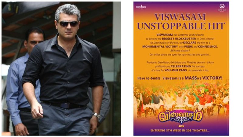 மேலும் படம் 5 வது வாரத்தை எட்டியுள்ள நிலையிலும் இன்னும் 208 தியேட்டர்களில் ‘விஸ்வாசம்’ ஓடிக்கொண்டிருப்பதாக அதிகாரபூர்வமாக அறிவித்து ரஜினி ரசிகர்களை வம்புக்கு இழுக்கிறது அந்த நிறுவனம்.