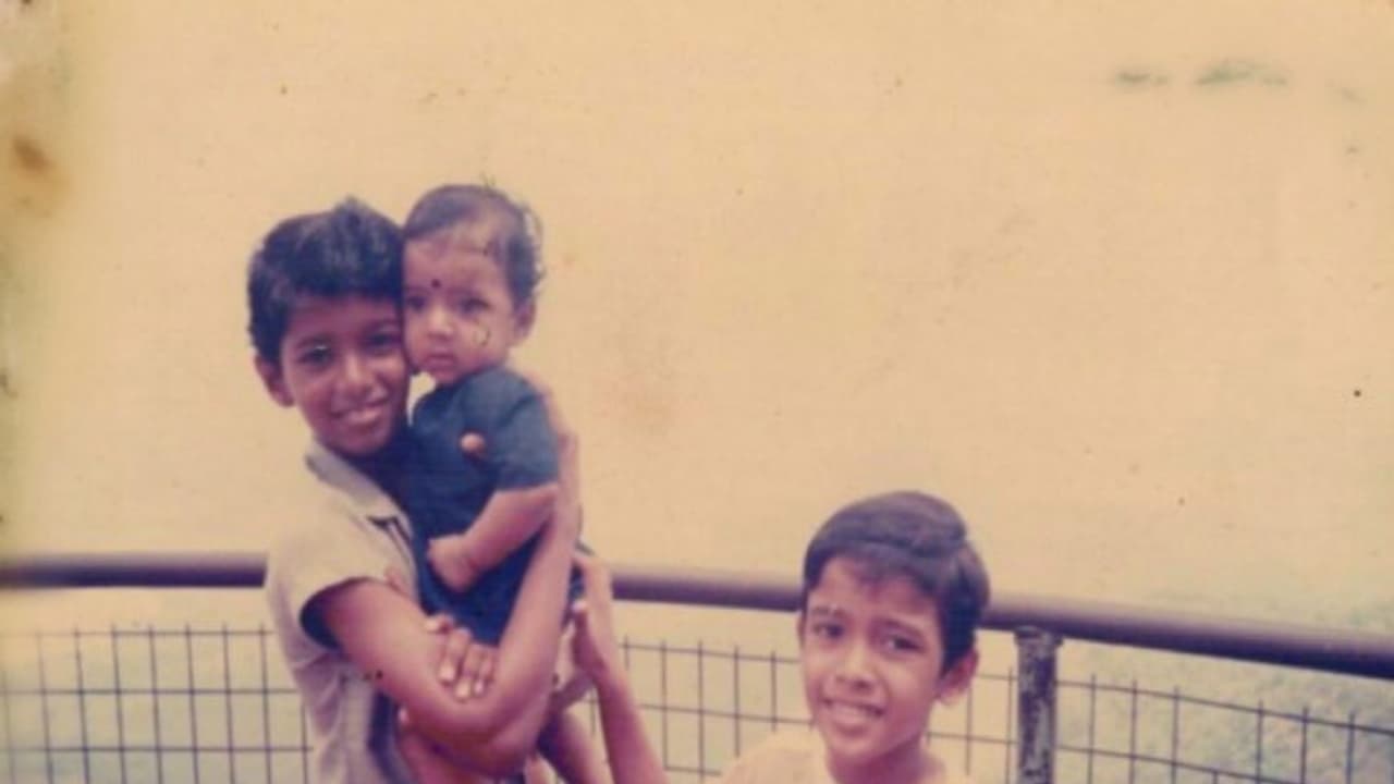 அதில், " நான் 6 மாத குழந்தையாக இருக்கும் போது என் இரண்டு அண்ணன்களுடன் எடுக்கப்பட்ட புகைப்படம் என தெரிவித்து உள்ளார்.