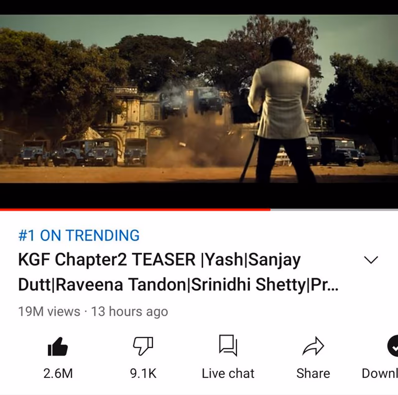 கொரோனா பிரச்சனைகளுக்குப் பிறகு கடந்த மாதம் மங்களூருவில் கே.ஜி.எஃப் சாப்டர் 2 படத்தின் ஷூட்டிங் மீண்டும் தொடங்கியது. தற்போது இறுதிக்கட்ட படப்பிடிப்பு ஐதராபாத்தில் நடைபெற்று வருகிறது. இன்று ராக்கி பாய் யஷ் தனது பிறந்தநாளை கொண்டாடிவருகிறார். எனவே அவருக்கு சிறந்த ஃபர்த்டே கிப்டாக கே.ஜி.எஃப் சாப்டர் 2 படத்தின் டீசரை படக்குழு வெளியிட்டுள்ளது. டீசர் வெளியான சில மணிநேரத்தில் அதற்கு யூடியூபில் 2 மில்லியன் லைக்ஸ் கிடைத்துள்ளது. குறைந்த நேரத்தில் அதிகம் லைக்ஸ் பெற்ற இந்திய பட டீசர் என்கிற பெருமையை கே.ஜி.எஃப். 2 பெற்றுள்ளது.