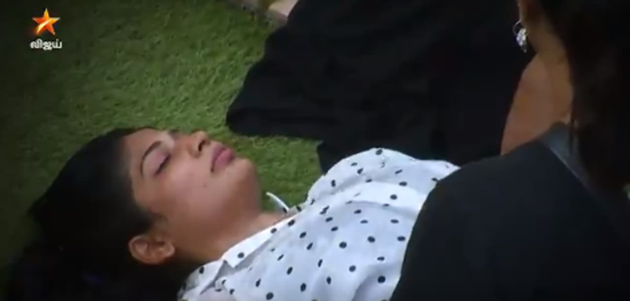 மும்தாஜ், மற்றும் ஐஸ்வர்யா இருவரும் அவருக்கு தண்ணீர் கொடுக்கிறார்கள் ஆனால் அதன் பின் அவருடைய நிலை இன்னும் மோசமாகிறது. மிகவும் சத்தமாக ஏப்பம் விடுகிறார். அவரை பிக்பாஸ் குரல் கண்பேஷன் அறைக்கு வருமாறு கூறுகிறது.