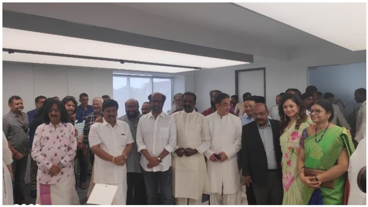 கமல்ஹாசனின் தயாரிப்பு நிறுவனமான ராஜ்கமல் பிலிம்ஸ் நிறுவனத்தின் புதிய அலுவலகம் சென்னை ஆழ்வார்பேட்டையில் அமைக்கப்பட்டுள்ளது. இதன் திறப்பு விழா இன்று நடைபெற்றது. இதில் நடிகர் ரஜினிகாந்த் கலந்து கொண்டு அலுவலகத்தை திறந்து வைத்தார். இதேபோல் மறைந்த இயக்குநர் கே.பாலச்சந்தரின் சிலையும் ராஜ்கமல் நிறுவனத்தின் அலுவலகம் முன்பகுதியில் அமைக்கப்பட்டுள்ளது.