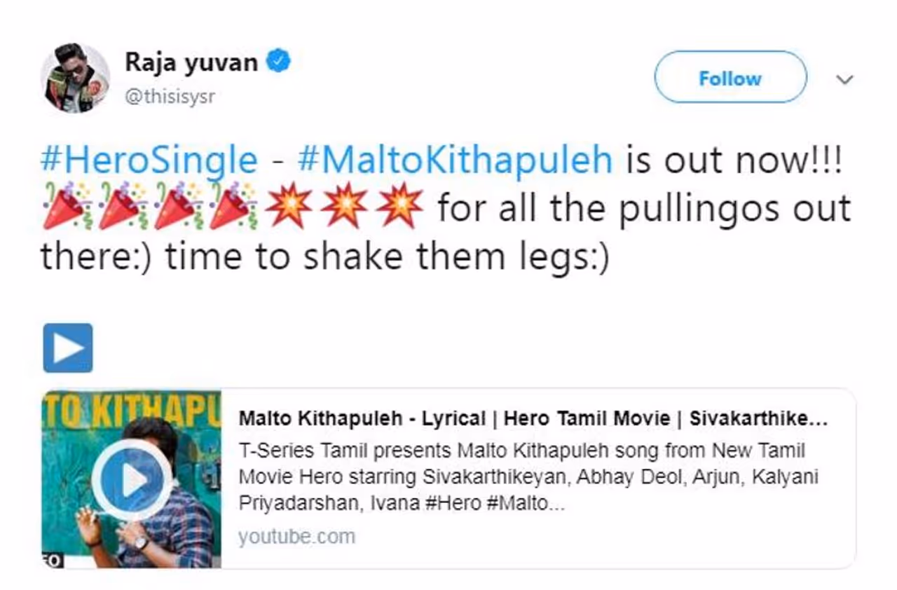 இப்பாடலில் இடம்பெற்றுள்ள 'நீ கரெக்டாக உழைச்சா வரும் வலிமை' போன்ற வரிகளும் ரசிகர்களின் கவனத்தை ஈர்த்துள்ளன. எதிர்பார்த்த மாதிரியே 'ஹீரோ' சிங்கிள் ட்ராக்கே ரசிகர்களை வெகுவாக கவர்ந்துள்ள நிலையில், படத்தின் பாடல்கள் மீதான எதிர்பார்ப்பு அதிகரித்துள்ளது.