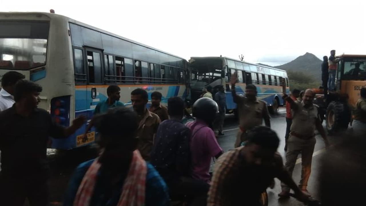 அரசு பேருந்துகள் நேருக்கு நேர் மோதல்