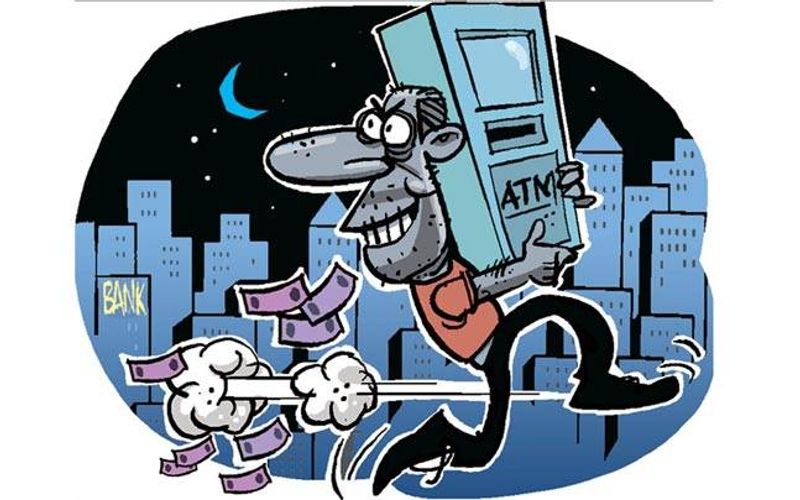 முதலில் அவர்கள் ஏ.டி.எம். மையத்தில் இருந்த கண்காணிப்பு கேமராவில் கருப்பு நிற ஸ்பிரே அடித்து மறைத்தனர். பின்னர் அவர்கள் வந்த காரில் ஏடிஎம் கூண்டை கட்டினர். இதையடுத்து காரை இயங்க வைத்து ஏ.டி.எம். எந்திரத்தை கூண்டோடு பெயர்த்து இழுத்துச்சென்றனர்.பின்னர் ஏ.டி.எம். எந்திரத்தை காரில் தூக்கிப்போட்டுக்கொண்டு அங்கிருந்து தப்பிச்சென்றனர்.