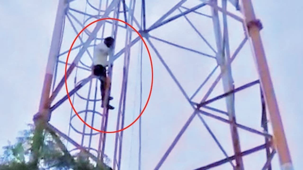 வேறு ஒருவருடன் கல்யாணமாகி குழந்தைகள் பெற்ற தனது பழைய காதலியை தன்னுடன் சேர்த்து வைக்கக்கோரி செல்போன் டவரில் ஏறி காதலன் தற்கொலை மிரட்டல் விடுத்து போராட்டம் நடத்திய சம்பவம் பரபரப்பு ஏற்படுத்தியுள்ளது.