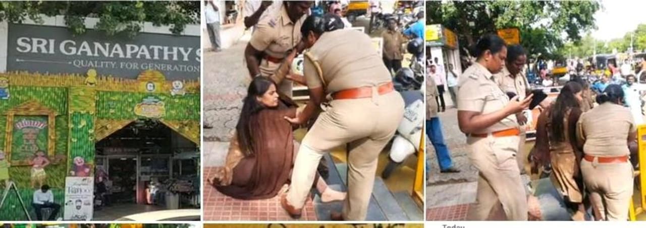 சுமார் 20 நாட்கள் தினந்தோறும் கடைக்குள் போராட்டம் நடத்தி வந்தவர் மீது கடை மேலாளர் கொடுத்த புகாரின் பேரில் போலீசார் கணபதி சில்க்ஸ் கடையில் தர்ணா போராட்டத்தில் ஈடுபட்ட மேனகாவை போலீசார் குண்டுகட்டாக கைது செய்துள்ளனர். இந்த சம்பவம் தேனி பகுதியில் பரபரப்பை ஏற்படுத்தியுள்ளது.