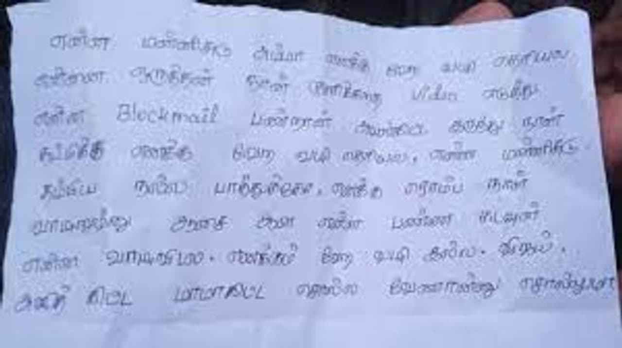 இந்த கடிதத்தை கைப்பற்றிய போலீஸார் இது குறித்து வழக்குப் பதிவு செய்து விசாரணை நடத்தி வருகின்றனர். மேலும் அக்கடிதத்தில், என்னை மன்னிச்சிடு அம்மா. எனக்கு வேற வழி தெரியல. ஒருத்தன் நான் குளிக்கிறதை வீடியோ எடுத்துக்கிட்டு பிளாக்மெயில் பண்றான். அவன்கிட்ட இருந்து தப்பிக்க எனக்கு வேற வழி தெரியலை. என்னை மன்னிச்சிடு. தம்பியை நல்லா பாத்துக்கோ. எனக்கும் ரொம்ப நாள் வாழனும் தான் ஆசை. ஆனால் என்ன பண்ண கடவுள் என்னை வாழ விடலை. எனக்கும் வேற வழி தெரியல என்று எழுதப்பட்டிருந்தது.
