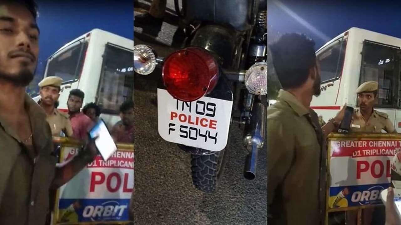 அவரது வாகனத்தில் போஸ் என ஸ்டிக்கர் ஒட்டப்பட்டிருந்தது, இதைப்பார்த்த போலீசார் விசாரிக்கையில் நான் இன்ஸ்பெக்டர் மகன் என இறுமாப்பாக பேசியுள்ளார். அப்போது அங்கிருந்தவர்களை இந்த காட்சியை வீடியோ எடுத்து இந்த சமூக ஊடக தளங்களில் வைரலாக பரவியது.
