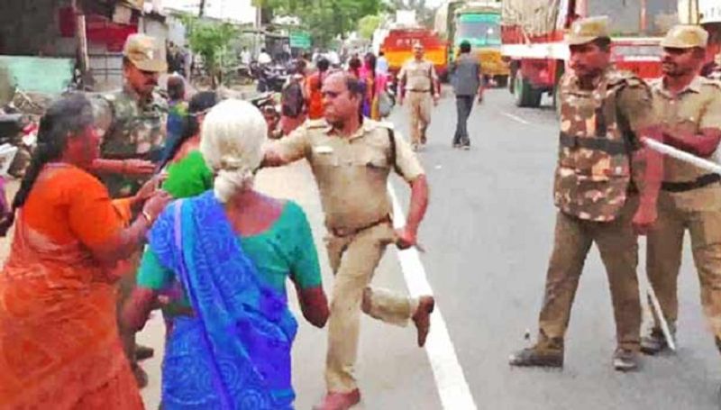 இதனால், போராட்டக்காரர்கள் மீது மாலையில் போலீசார் தடியடி நடத்தினார்கள். அப்போது ஈஸ்வரி என்ற 45 வயது பெண்ணின் கன்னத்தில் திருப்பூர் கூடுதல் போலீஸ் சூப்பிரண்டு ஓங்கி அறைந்தார். அடி தாங்க முடியாத அந்த பெண் நிலைகுலைந்தார். மேலும் அவர் கேட்கும் திறனையும் இழந்தார். இந்த சம்பவம் பெரும் பரபரப்பை ஏற்படுத்தியது.