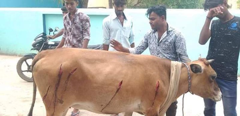 வேலூர் மாவட்டம் ஆம்பூர் அருகே கட்டி வைக்கப்பட்டிருந்த 3 பசு மாடுகளை சரமாரியாக வெட்டிவிட்டு தப்பி ஓடிய மர்ம நபர்களை போலீசார் வலைவீசி தேடி வருகின்றனர்.