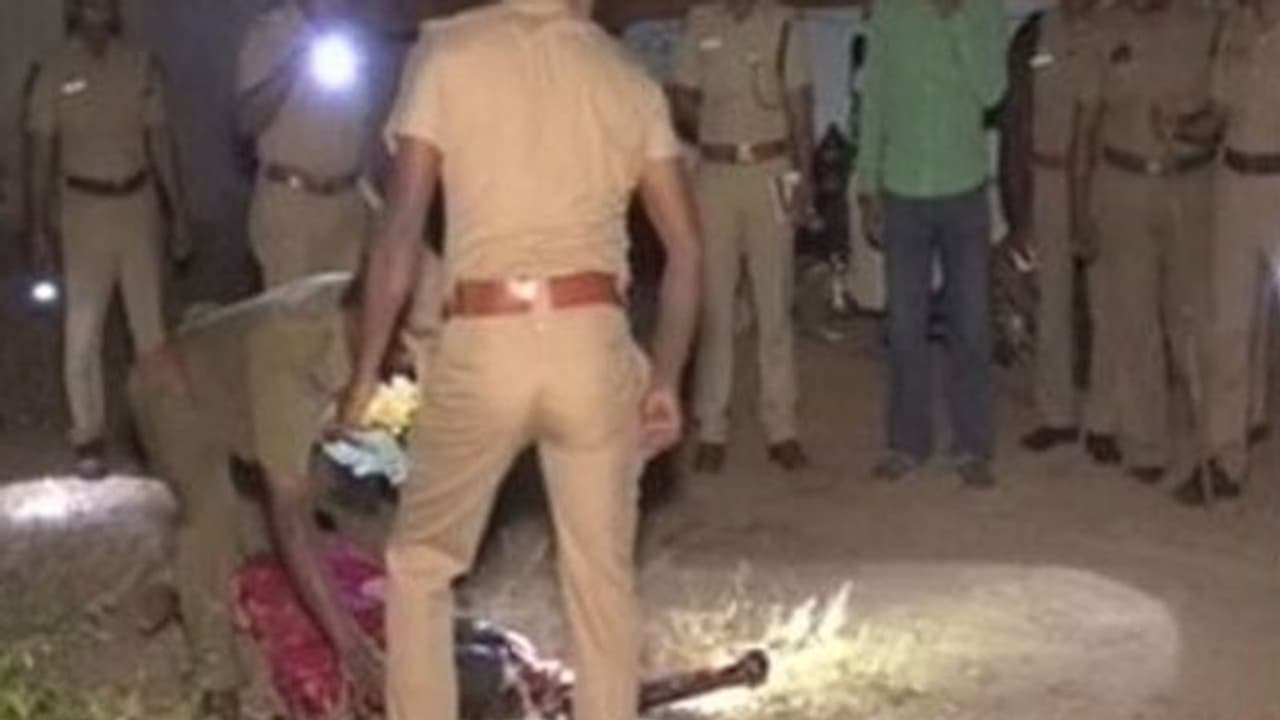 இதனையடுத்து ஆத்திரமடைந்த பெற்றோர் கீழசிம்பூரில் உள்ள தனது மருமகன் வீட்டிற்கு சென்று கணேசனின் தந்தை பாண்டியிடம் பேச தொடங்கினர். பின்னர் நாளடைவில் வாக்குவாதம் முற்றியது. இதில் கடும் ஆத்திரம் அடைந்த மருமகன் கணேசன் மற்றும் அவரது தந்தை பாண்டி ஆகியோர் முனீஸ்வரி பெற்றோரை ஓட...ஓட... விரட்டி அரிவாளால் சரமாரியாக வெட்டிக் கொன்றனர்.