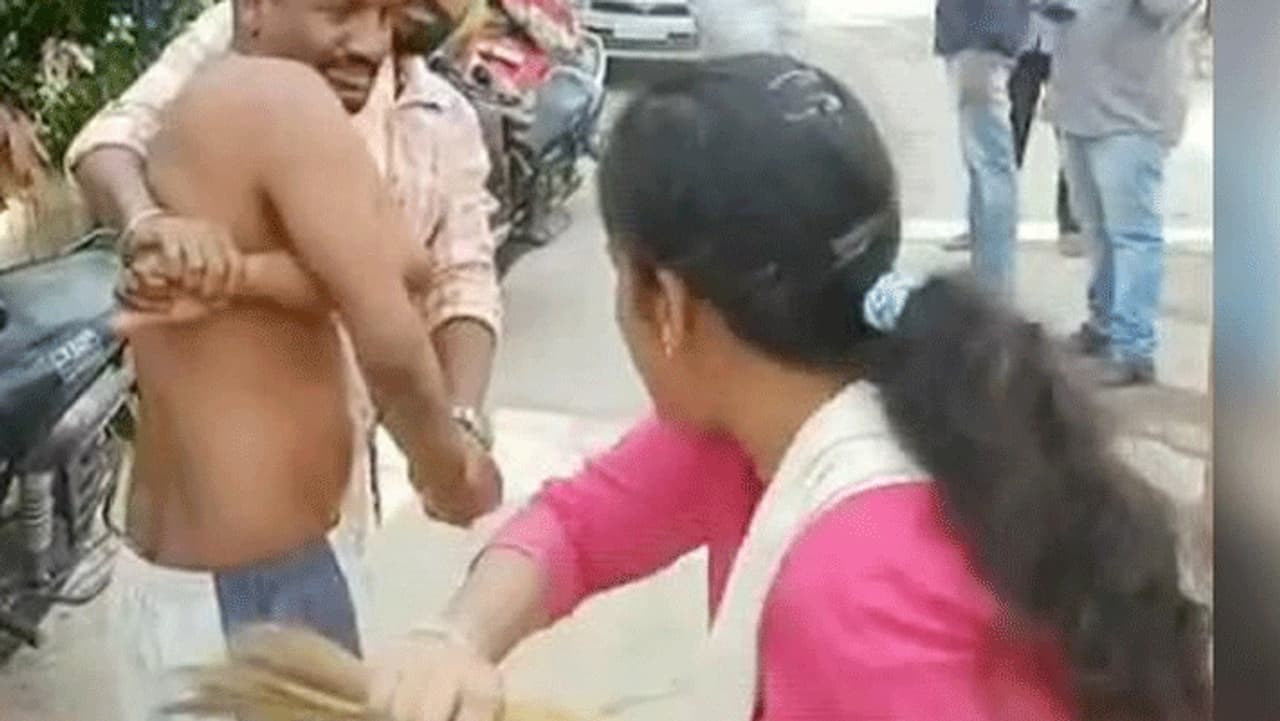 பின்னர், கணவரை சாலையில் இழுத்து வந்து பொதுமக்கள் முன்னிலையில் தாக்கத் தொடங்கினார். அதில் கோபால் அணிந்திருந்த டிரவுசர் கழன்று விழும் அளவுக்கு வெளுத்து வாங்கினார். இதனையடுத்து, இருவரையும் காவல் நிலையத்தில் ஒப்படைத்தார். இது தொடர்பான வீடியோ சமூகவலைதளங்களில் வைரலாகி வருகிறது.
