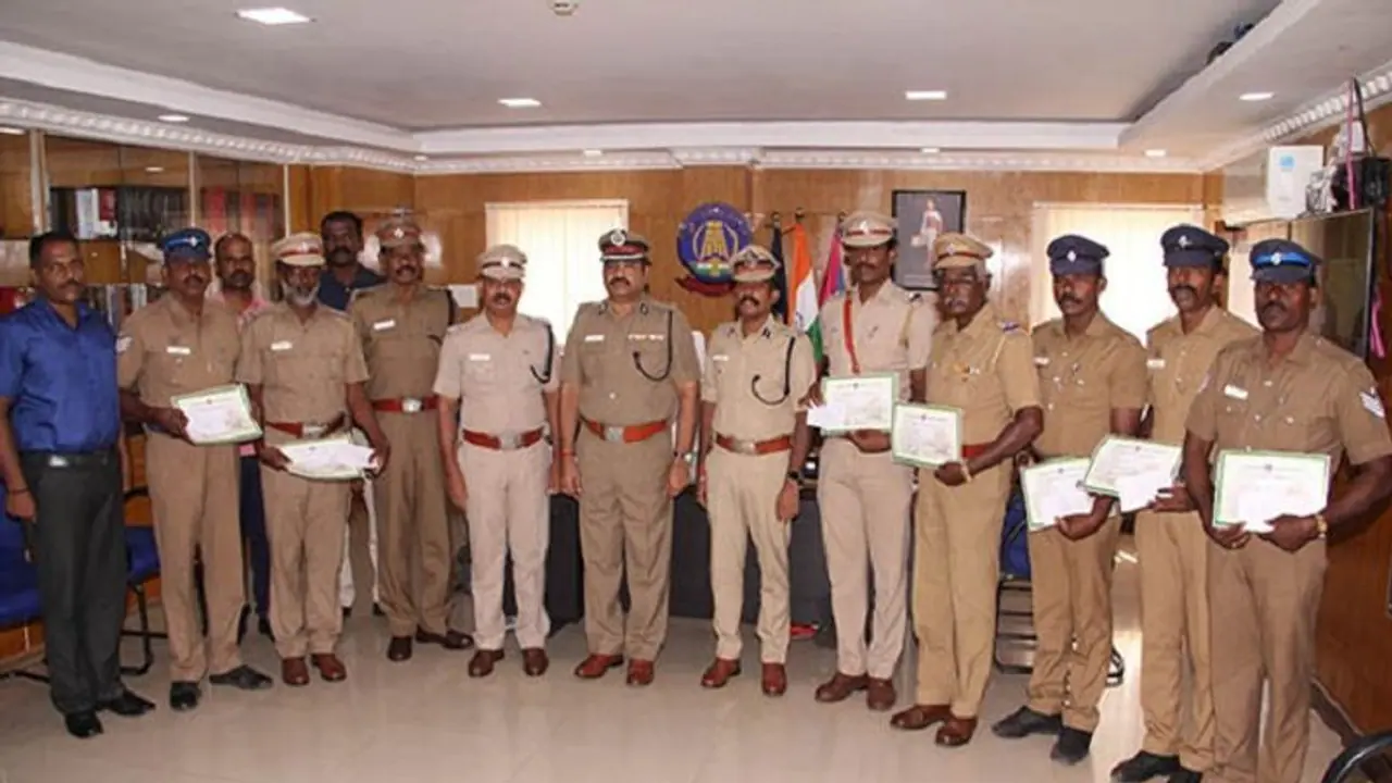 திருச்சி லலிதா ஜுவல்லர்ஸ் நகைக்கடை கொள்ளையனை பிடித்த திருவாரூர் காவல் உதவி ஆய்வாளர் பாரத நேரு உள்ளிட்ட காவல் துறையினருக்கு பாராட்டு தெரிவிக்கப்பட்டது.