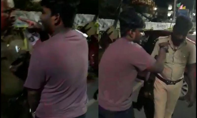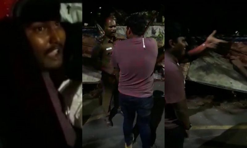 இதனை பார்த்த காலை ரோந்துப்பணியில் இருந்த போலீஸ் வந்து சேதாரத்தை பார்த்துக்கொண்டிருந்தனர், விபத்து ஏற்படுத்திய வாகனத்தடை பார்த்தத்தில் கார் ஓட்டிவந்த இளைஞர்கள் போதையில் இருந்துள்ளனர். அப்போது ஒருவர் மட்டும் காரை விட்டு இறங்கி வந்துள்ளார் அப்போது கேள்விக்கேட்ட போலீசாருடன் ஆவேசமாக பேசுகிறார். சாதாரணமான பேச்சா அது? வாயில் வண்ட வண்டயாக கழுவி ஊத்தும் வார்த்தைகள் டேய் தெ** ங்கோ** தெ** நீ நிப்பாட்டுடா.. நிப்பாட்டுடா... ங்கோ* தெ** சொல்லுடா நிறுத்துடா என அதிகாலையில் அரை போதையில் சுற்றி நிற்கும் போலீஸ்காரர்களை பார்த்து மப்பில் மானாவாரியாக அலும்பல் விட அந்த ஹீரோவின் நண்பரின் உதவியோடு போலீஸ் ஸ்டேஷனுக்கு அழைத்தது சென்றனர்.