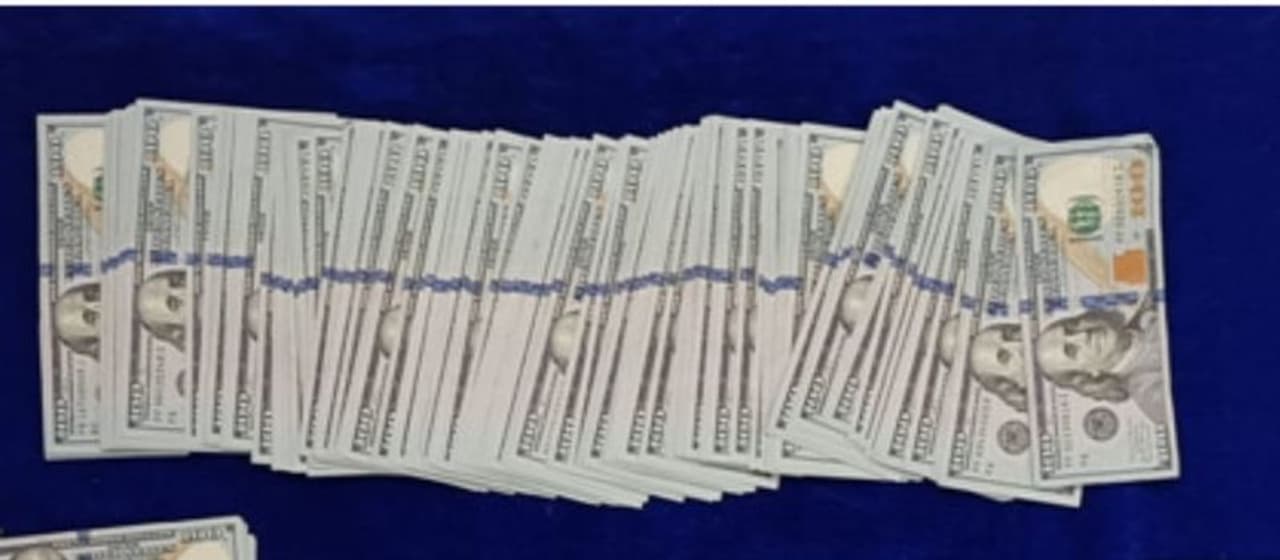 அவர்கள் உடைமைகளை சோதித்தனார். உடைமைகளில் எதுவும் இல்லை, இதை அடுத்து அவர்கள் இருவரையும் தனி அறைக்கு அழைத்து சென்று ஆடைகளை கலைந்து சோதித்தனா். அவர்கள் இருவரின் உள்ளாடைகளுக்குள் கட்டு கட்டாக அமெரிக்க டாலர் வெளிநாட்டு பணம் 20, 400 மறைத்து வைத்து இருந்ததை கண்டுப்பிடித்து பறிமுதல் செய்து, இருவரையும் கைது செய்தனா்.