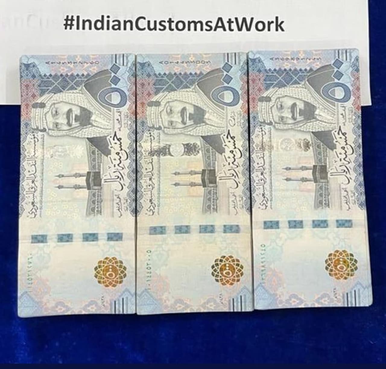 இந்நிலையில் சென்னையில் இருந்து தாய்லாந்து நாட்டு தலைநகர் பாங்காங் செல்லும் ஏர் ஏசியா விமான பயணிகளையும், சுங்க அதிகாரிகள் சோதனை செய்தனா். அப்போது சென்னையைச் சேர்ந்த ஆண் பயணியின் உள்ளாடைகள் 15,000 சவுதி அரேபியன் ரியால் மறைத்து வைத்திருந்ததை கண்டுபிடித்து, பறிமுதல் செய்து, அவரையும் கைது செய்தனர்.