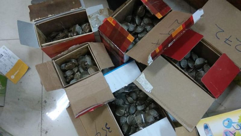 ஆனால், சந்தேகம் தீராத அதிகாரிகள், அந்த 6 அட்டை பெட்டிகளையும் பிரித்து பார்த்தனா். அதில், உயிருடன் கூடிய சிகப்பு காது அலங்கார நட்சத்திர ஆமைகள் இருப்பது தெரிந்தது. மொத்தம் 4800 ஆமைகள் இருந்தன. இதன் மதிப்பு ரூ10 லடச்ம் என கூறப்படுகிறது. இதையடுத்து அதிகாரிகள், ஆமைகள் கூறித்து விசாரித்தபோது, உரியமுறையில் கொண்டு வந்ததாக கூறி சில ஆவணங்களை கொடுத்தனர். அதை அதிகாரிகள் ஆய்வு செய்தபோது, அது போலி ஆவணம் என தெரியவந்தது.