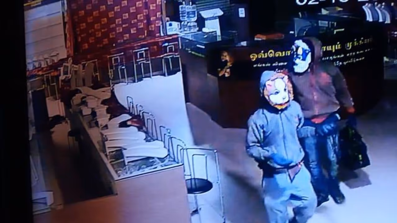 அதிகாலை 2.11 முதல் 3.15க்குள் கொள்ளை சம்பவம் நடத்திய இந்த கொள்ளை நடத்திய இவர்கள், விலங்குகளின் முகங்கள் போல குழந்தைகள் விளையாடும் முகமூடிகளை கொள்ளையர்கள் அணிந்திருந்ததாகவும், உடல் முழுவதையும் மறைக்கும் ஆடைகளை அணிந்துகொண்டும் கொள்ளையர்கள் கொள்ளையடித்துள்ளனர்.