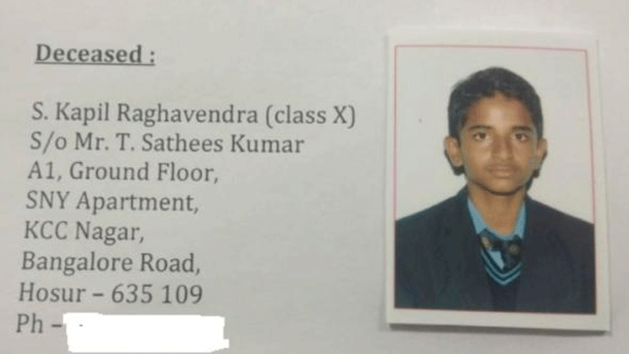 அப்போது, பள்ளி சீருடையில் ஒரு மாணவர் வெளியில் சுற்றுக்கொண்டு இருப்பதாக தொலைபேசி மூலம் தகவல் வந்தது. இதனையடுத்து, ஸ்ரீஹரியை பிடித்து ஆசிரியர்கள் விசாரித்த போது கபில் ராகவேந்திராவுடன் ஏற்பட்ட சண்டையில் அவரை அடித்து கழிவறையில் போட்டு வைத்திருப்பதாக கூறியுள்ளார். இதனையடுத்து, கழிவறையில் இருந்த கபில் ராகவேந்திராவை மீட்டு மருத்துவமனைக்கு கொண்டு செல்லும் வழியில் அவர் உயிரிழந்தது தெரியவந்தது. பின்னர், மாணவர் உடலை பிரேத பரிசோதனைக்காக அரசு மருத்துவமனைக்கு அனுப்பி வைத்தனர். ஸ்ரீஹிரியில் போலீசார் தொடர்ந்து விசாரணை நடத்தி வருகின்றனர்.