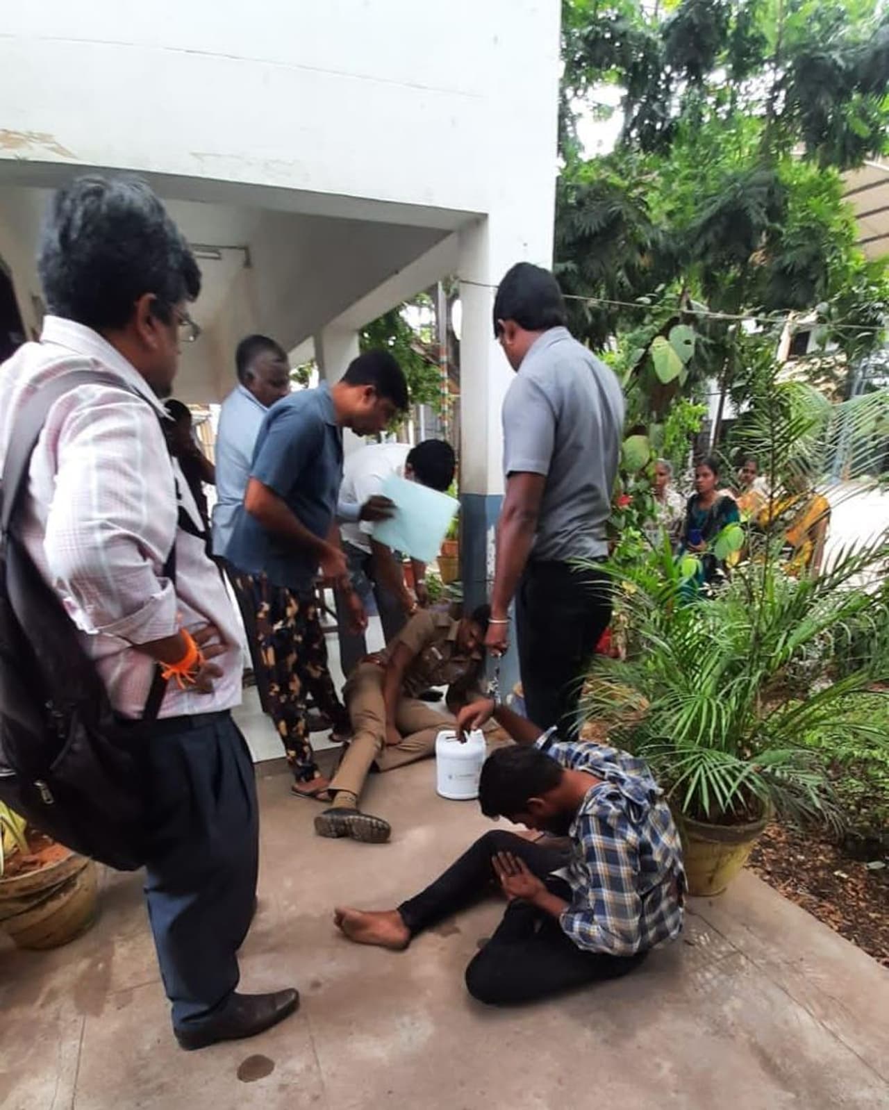 மயங்கி விழுந்த போலீஸ்