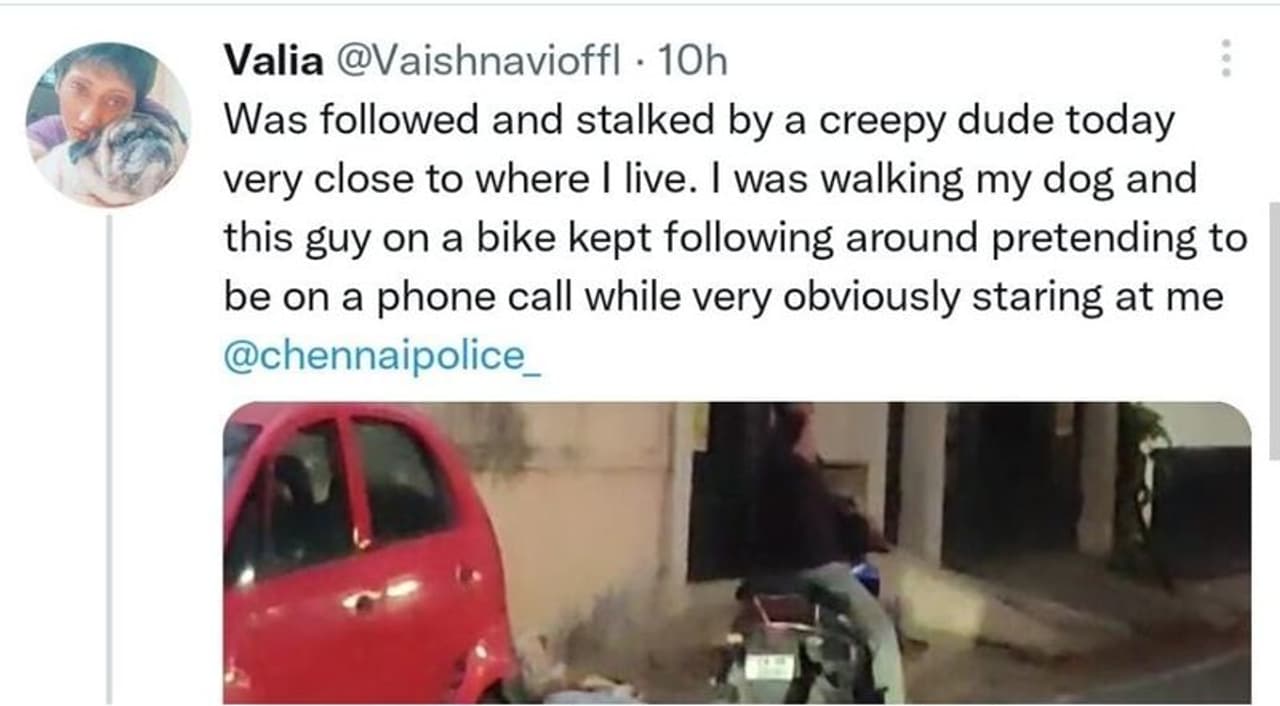 இதனையடுத்து தனது வீடு அந்த மர்ம நபருக்கு தெரிந்து விடக்கூடாது என்பதற்காக 30 நிமிடங்களுக்கு மேல் சாலையிலேயே நின்றதாக தெரிவித்துள்ளார். தன் வளர்ப்பு நாயுடன் நடை பயிற்சி மேற்கொள்ளும் போது மிரட்டும் விதமாக பின்தொடர்ந்து வந்ததாகவும் தெரிவித்துள்ளார். இதனை தொடர்ந்து போன் பேசுவது போல் அந்த மர்ம நபரை வீடியோ பதிவு செய்ததாக ஆர்.ஜே வைஷ்ணவி கூறியுள்ளார். இந்த புகாரை சென்னை காவல்துறை டிவிட்டர் பக்கத்திலும் டேக் செய்துள்ளார்