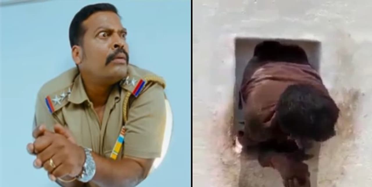 நடிகர் சிவா மற்றும் விமல் இணைந்து நடித்து இயக்குனர் சுந்தர்.சி இயக்கிய திரைப்படம் கலகப்பு.. இந்த திரைப்படத்தில் நடிகர் சிவா ஒரு வீட்டிற்கு திருட செல்லுவார், திருடிய பிறகு நகை மற்றும் பணத்தோடு வெளியே செல்ல முற்படுவார். ஏற்கனவே வந்த ஓட்டை வழியாக வெளியே செல்லும் போது அவரது இடுப்பு பகுதி ஓட்டைக்குள் சிக்கிக் கொண்டு விடும்.. இதனால் என்ன செய்வதென்று சிவா திரு திருவென முழிப்பார். அப்போது விடிந்ததும் நடிகர் சிவா பொதுமக்களிடம் மாட்டிக்கொள்வார். இதே போல் அதே திரைப்படத்தில் மற்றொரு காட்சியில் போலீஸ்காரர் குற்றவாளியை கைது செய்வதற்காக குளியலறைக்குள் உள்ள ஓட்டைக்குள் செல்லும் போது மாட்டிக்கொள்வார் இந்த காட்சி திரைப்பட ரசிகர்களை வெகுவாக ரசித்து சிரிக்க வைத்தது.